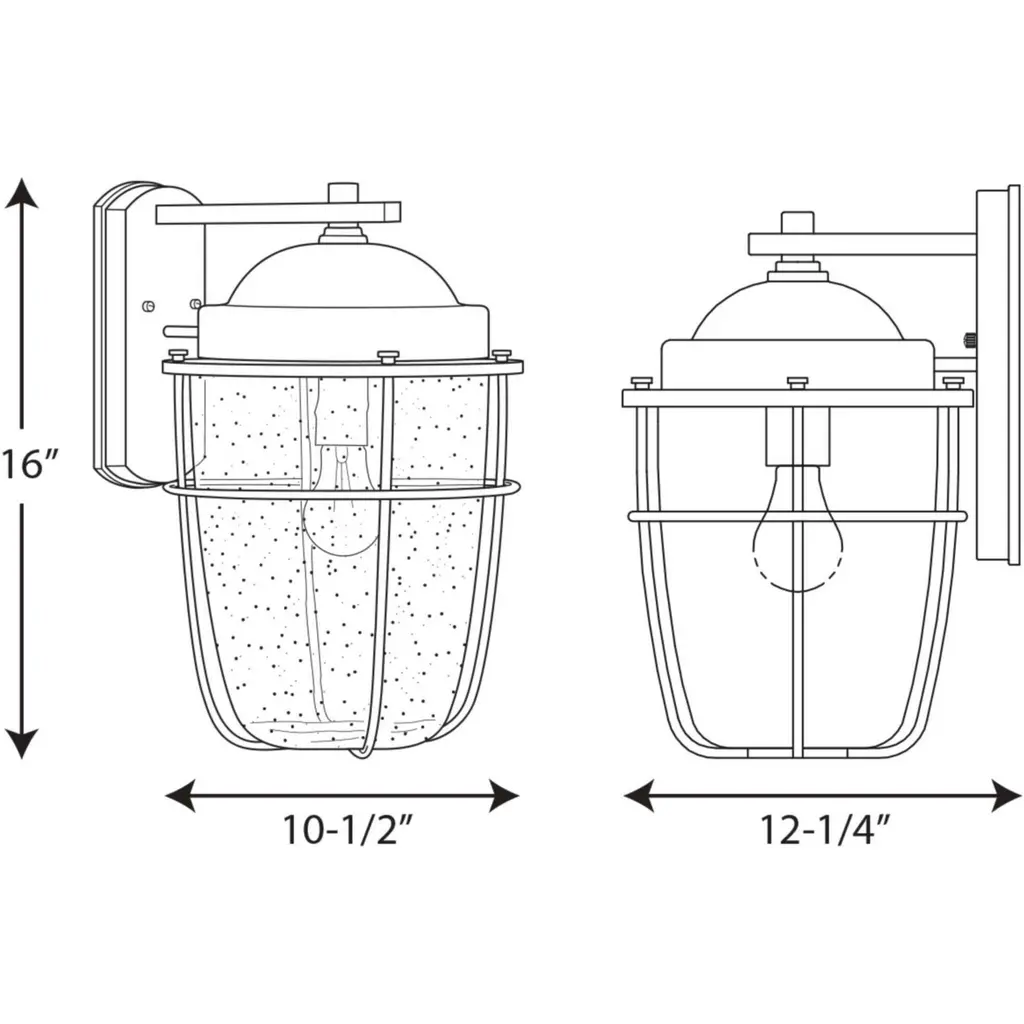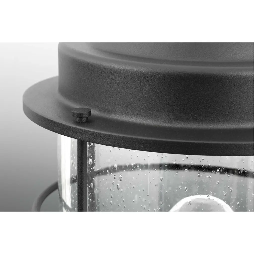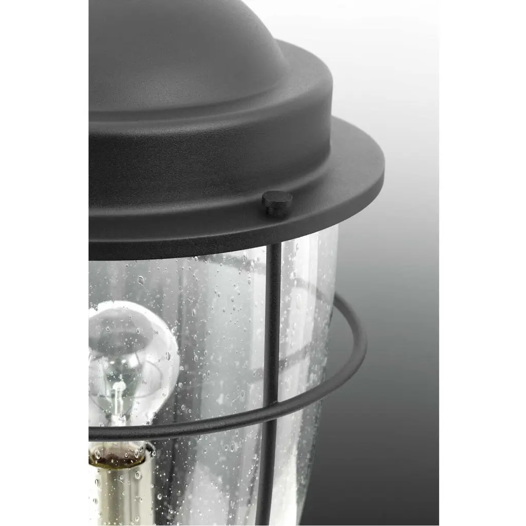 A nautical-inspired collection ideal for a variety of exteriors, including Coastal, Transitional and Urban Industrial settings. The one-light black large wall lantern with clear seeded glass feature a hint of brushed nickel on the interior. Geometric details offer a finishing touch for wall, hanging and post lantern options.
