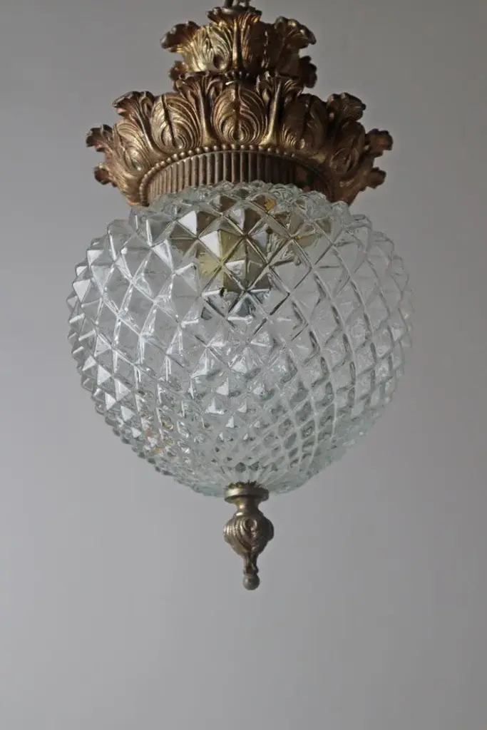 Hollywood Regency Gilded Pineapple Lantern Lamp from Massive, Belgium, 1970s, in Good conditions. Designed 1920 to 1949 This piece has an attribution mark, I am sure that it is completely authentic and take full responsibility for any authenticity issues arising from misattribution, Up to 250V (Europe/UK Standard).The wiring of this item may be original and might need replacement, if not specified otherwise.