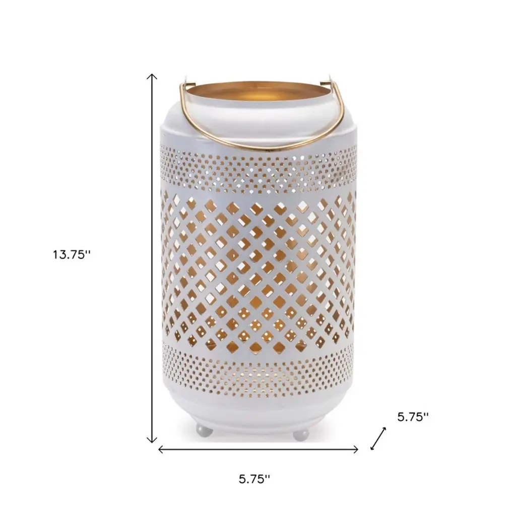 Homeroots 14" White And Gold Pierced Lattice Metal Lantern Candle Holder
