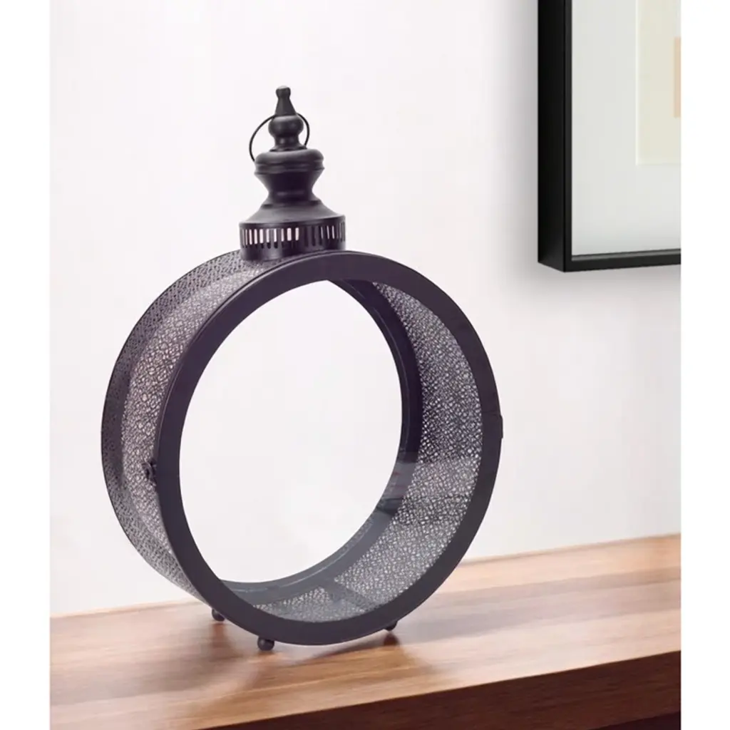 You can showcase this 22-inch black distressed ornate metal floor lantern candle holder on its own as alternative centerpieces or position it among flower arrangements on your tables. A perfect functional and decorative accent piece for weddings, dining tables and living rooms alike. This candleholder is the perfect illuminating design to accent your space in style. Candleholders are an attractive way to turn a simple candle into a piece of décor. 22-inch h x 16-inch w x 6-inch d.