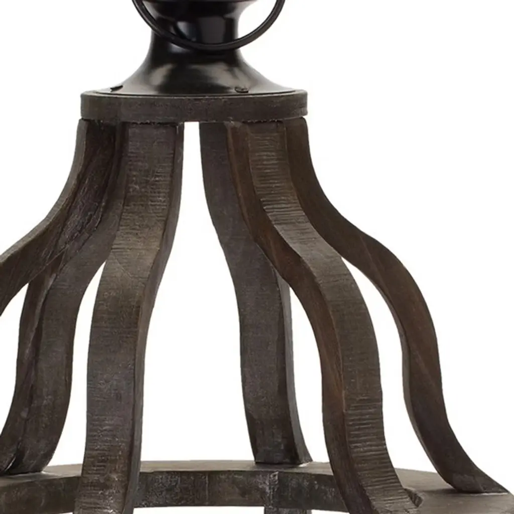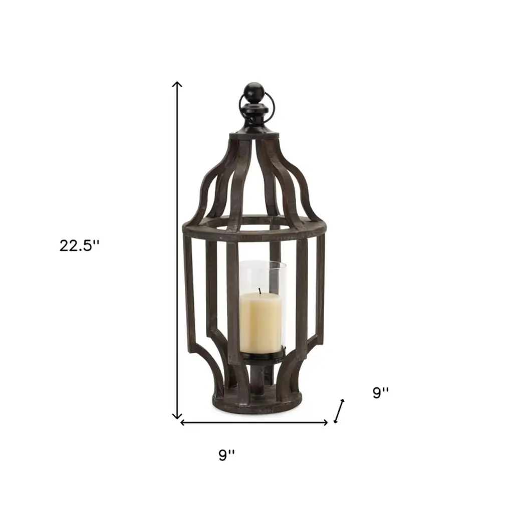 Homeroots 23" Black Geometric Wood And Glass Tabletop Lantern Candle Holder