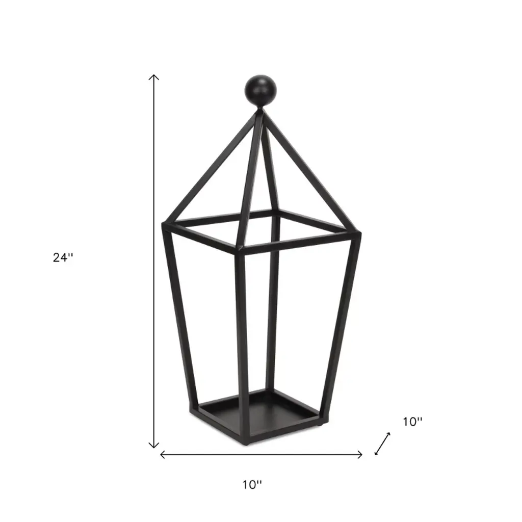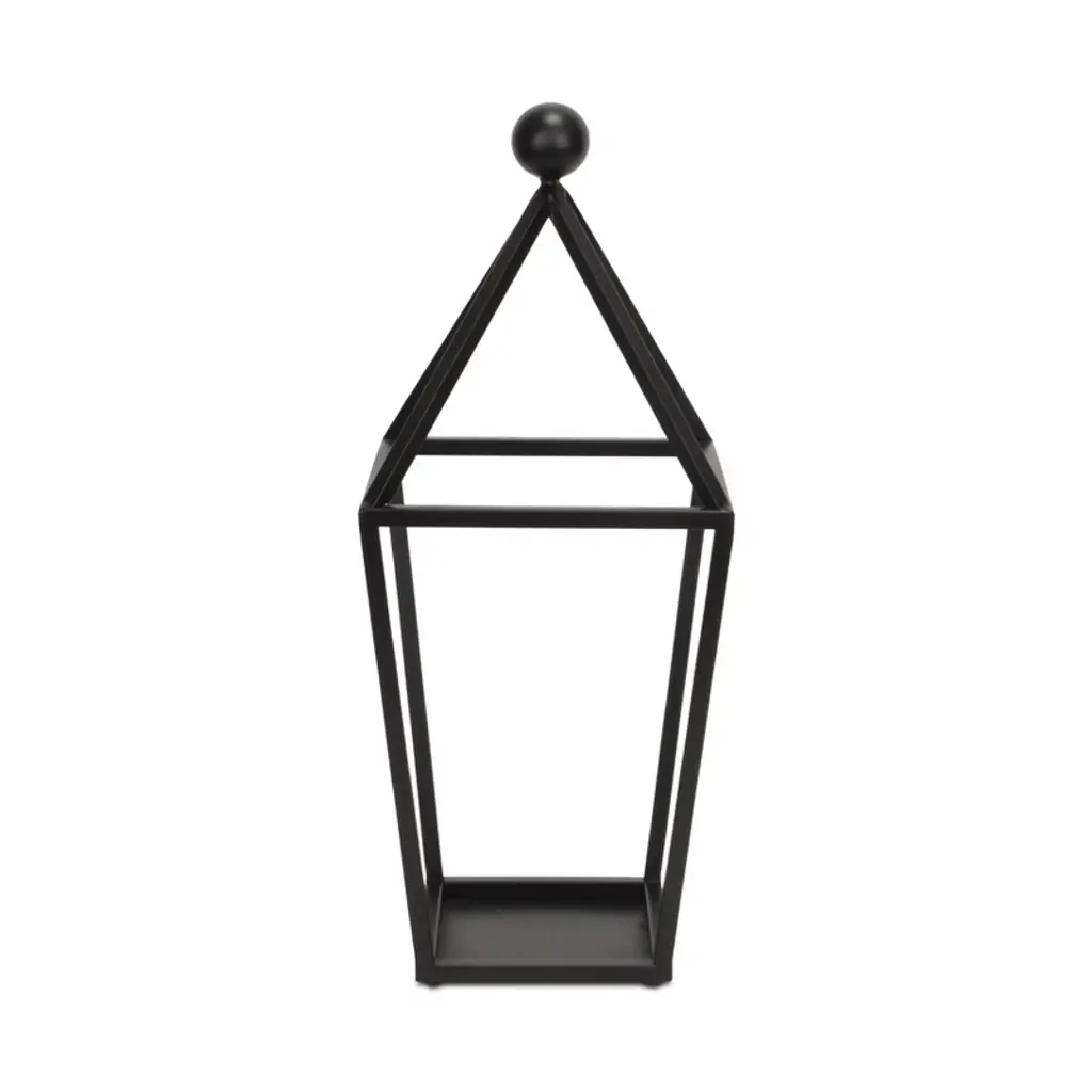 Homeroots 24" Black Geometric Metal Tabletop Lantern Candle Holder