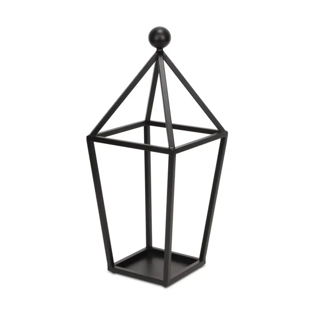 This 24-inch black geometric metal tabletop lantern candle holder is perfect whether you’re creating a beautiful tablescape centerpiece or looking to illuminate a space. Handmade by skilled craftsmen and designed to add a glamorous glow to any event or table setting. Add an extra pop of personality to every corner of your home with this gorgeous metal pyramid candleholder or sculpture that looks like a house. 24.00-inch h x 10.00-inch w x 10.00-inch d.