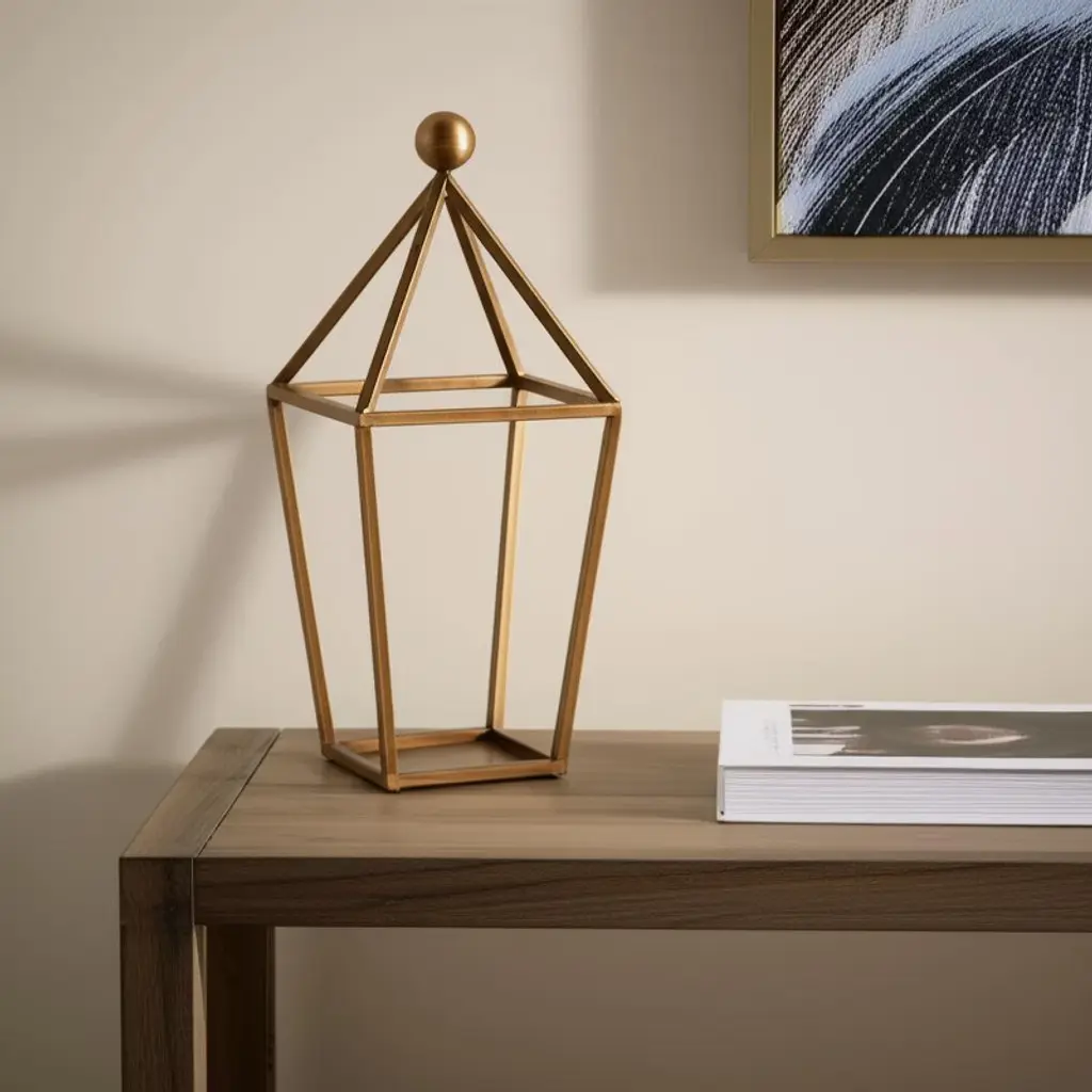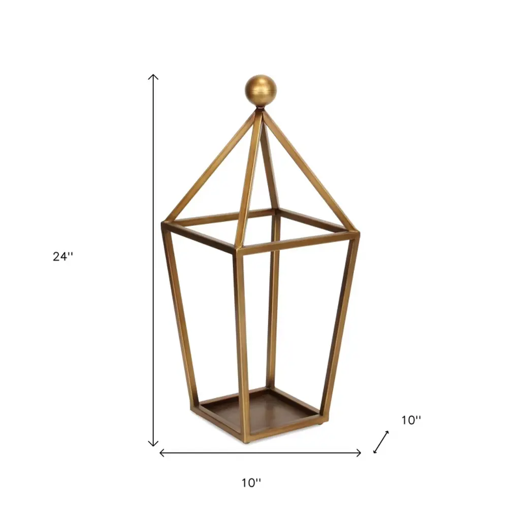 Homeroots 24" Gold Geometric Metal Tabletop Lantern Candle Holder