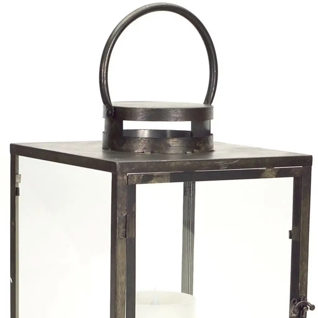 This set of three gray and brown distressed geometric glass metal and wood floor lantern candle holders is perfect whether you’re creating a beautiful tablescape centerpiece or looking to illuminate a space. This candleholder is the perfect illuminating design to accent your space in style. Candleholders are a decorative accent on their own. With our without candles. 12-inch h x 6.38-inch w x 6.38-inch d.