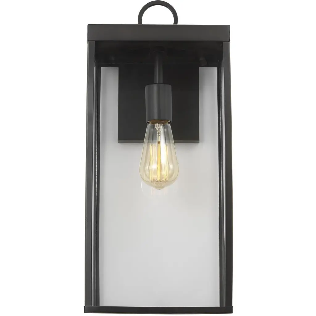 The Drew & Jonathan Howell outdoor series infuses classic design with clean, contemporary lines. The frame is crafted from weather-resistant aluminum for an industrial appeal and a ring detail to complement the design. Inside, Howell features an open bulb base that aims the light out over your space from a single light bulb (sold separately).