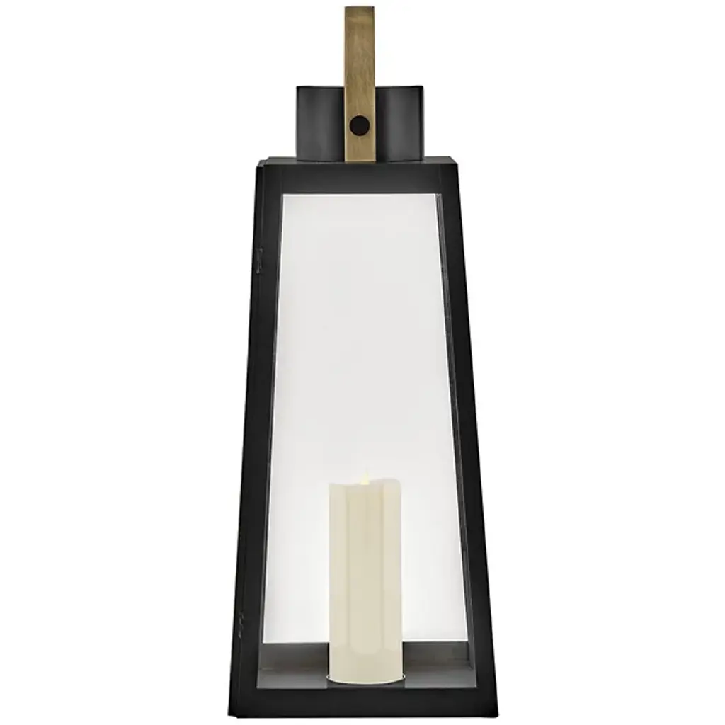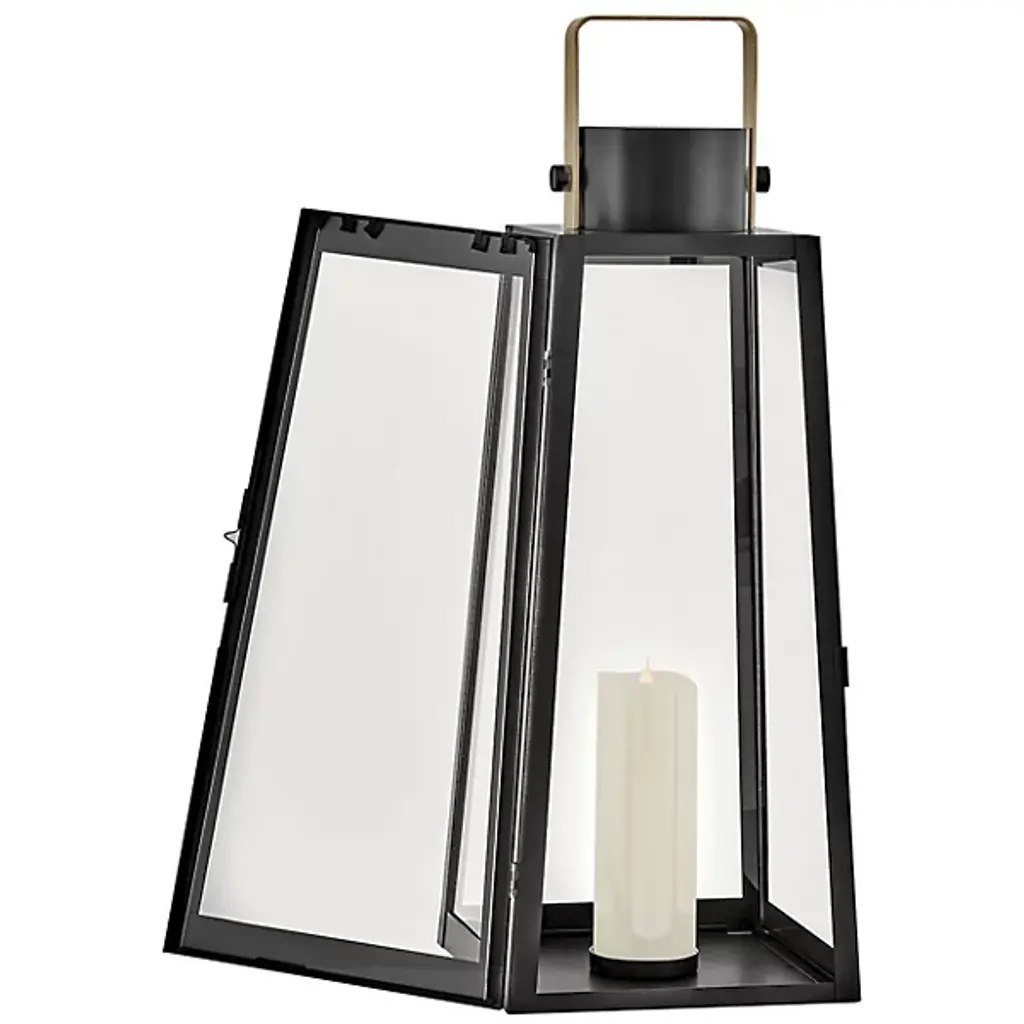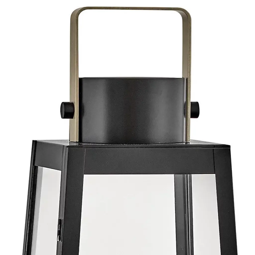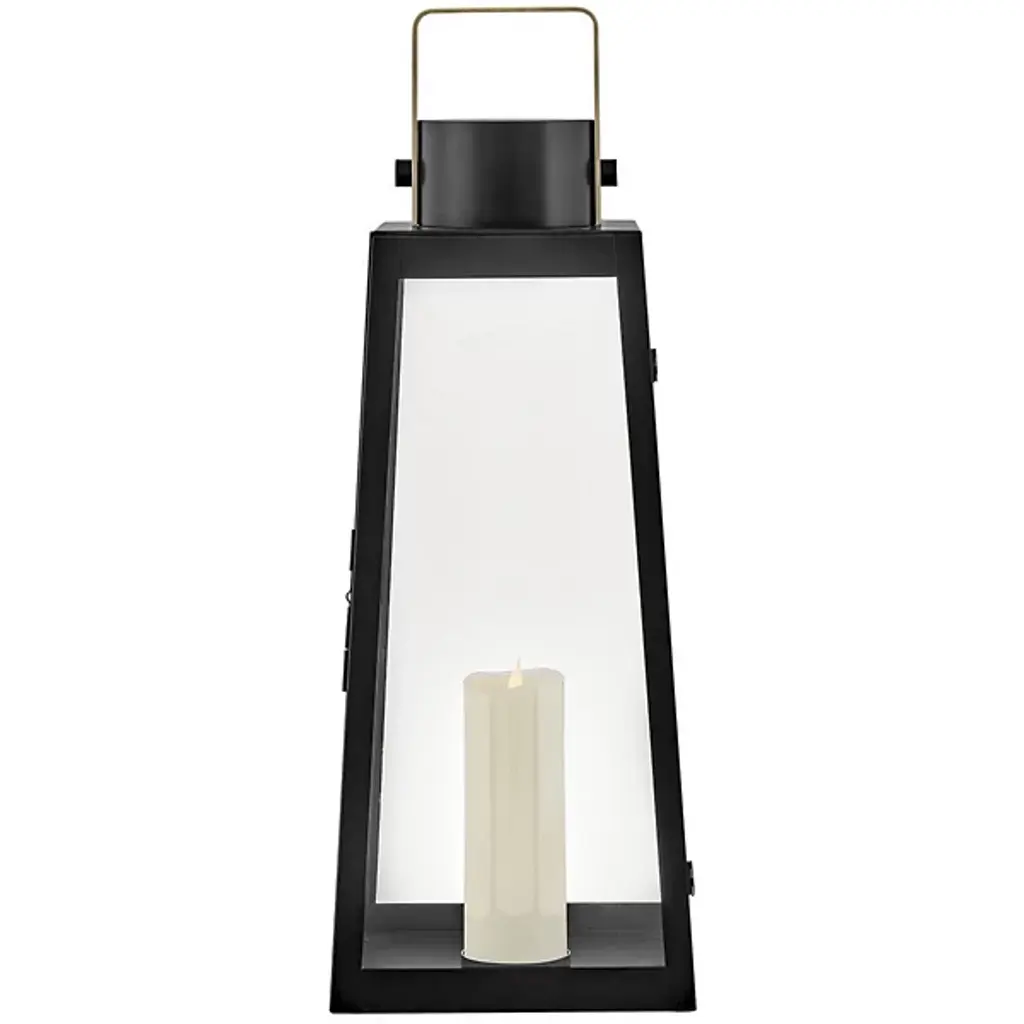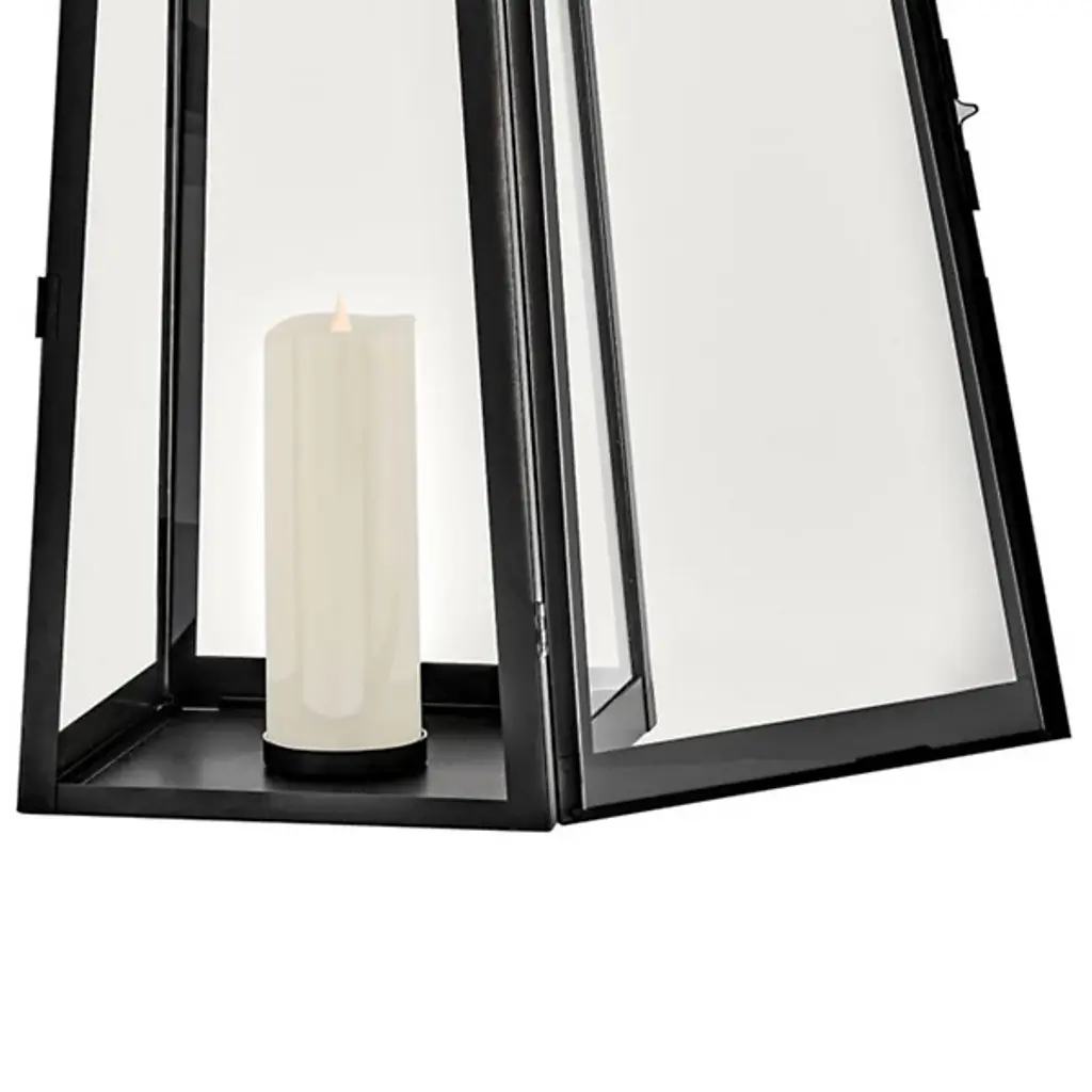The Hugh Outdoor Lantern from Lark elevates your outdoor space with its sleek transitional style. Its trapezoidal design showcases bold, oversized clear glass panes framed by carefully selected two-tone metal finishes, adding a modern edge to any setting. For maximum impact, consider pairing it with a tubular vintage filament bulb to highlight porches, patios, or any exterior area. This will enhance the lantern's presence with nostalgic charm and illuminate your outdoor ambiance with sophisticated flair.