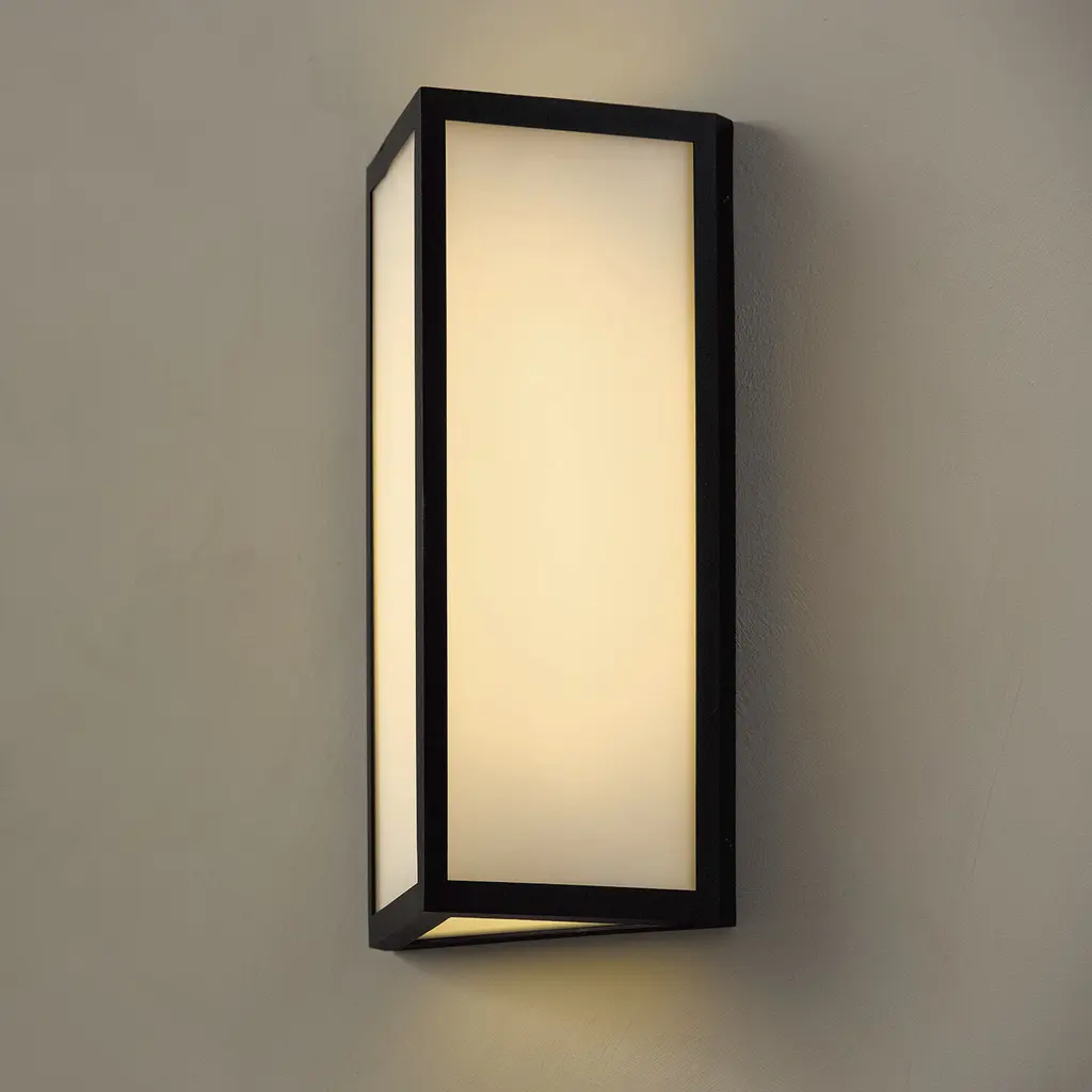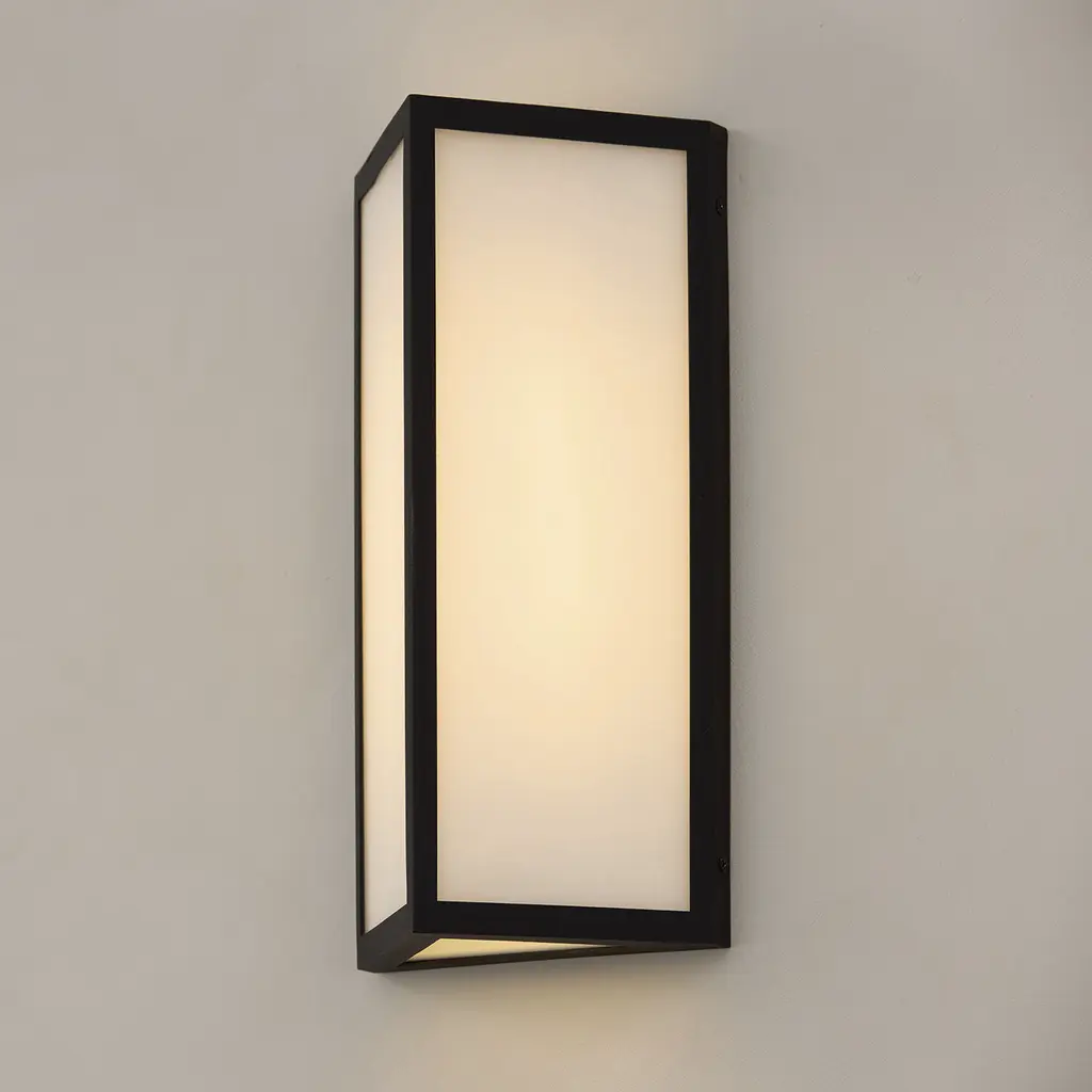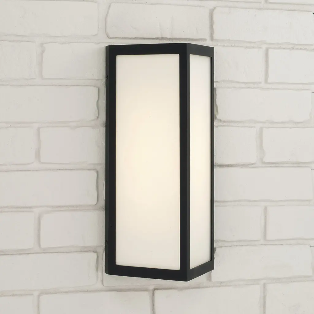 Illuminate exterior spaces with the contemporary style of the Irvin Small Wall Lantern. The Black finish brings a striking contrast to the triangular prism, crafted with Painted White glass and white interior backplate to create maximum glow. Open on top and bottom, this fixture is designed to be fully waterproof with an integrated LED. Part of our Rain or Shine Collection and backed by our five-year warranty against fading or rusting.