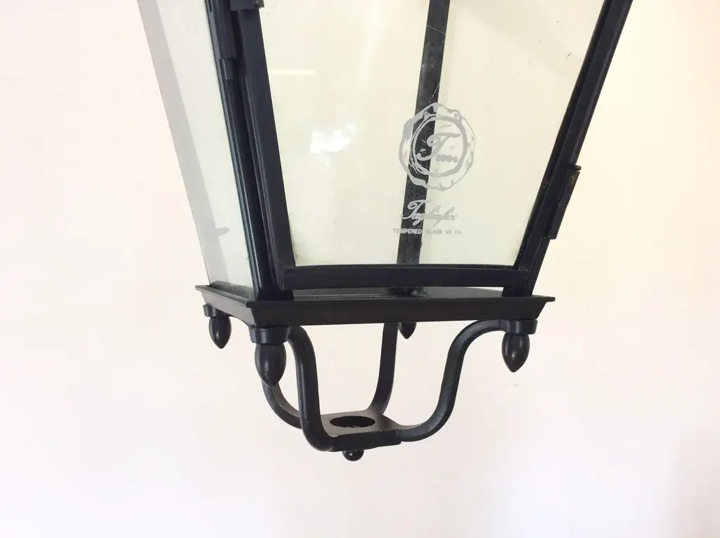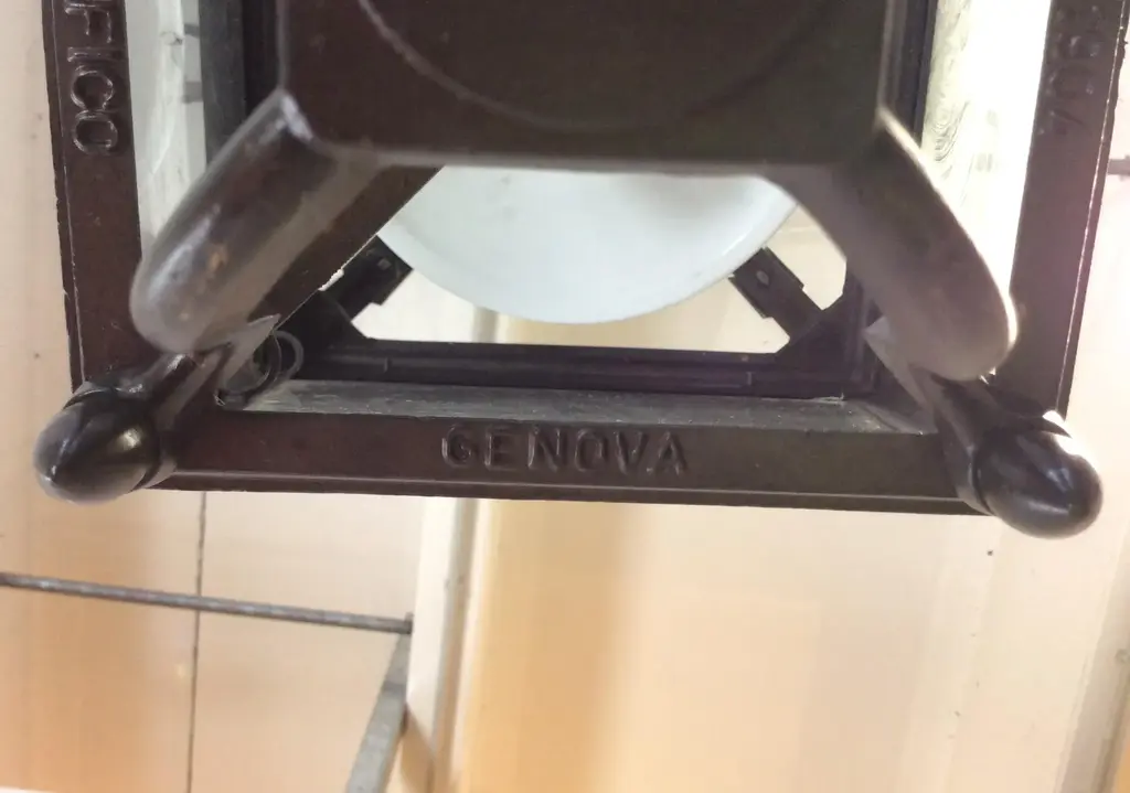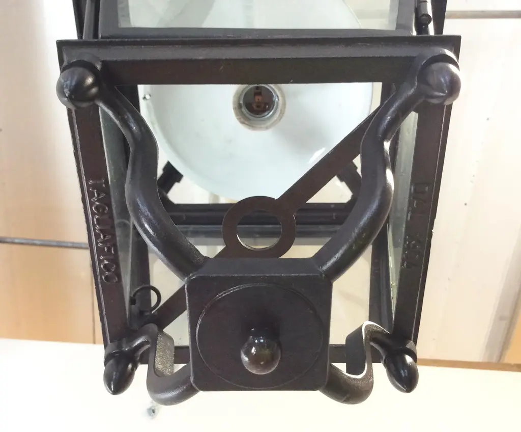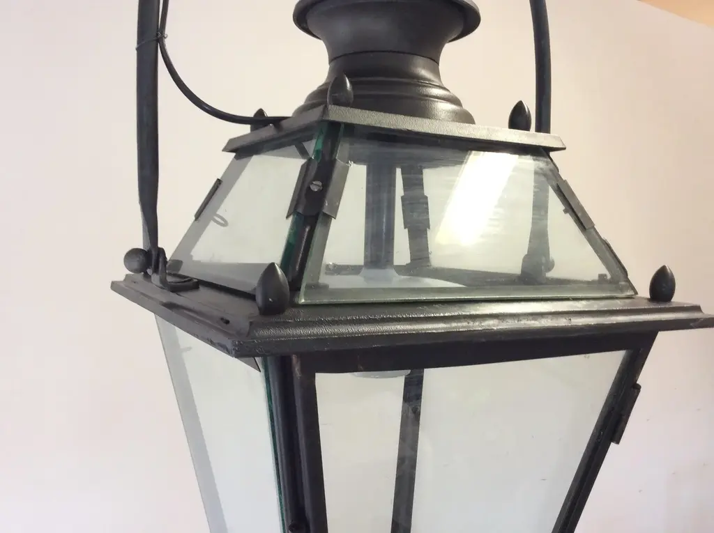 40s lanterns in burnished bronze produced by the Genoese Tagliafico company, temperate glasses (possible location both inside and outside), restored, new electrical system.