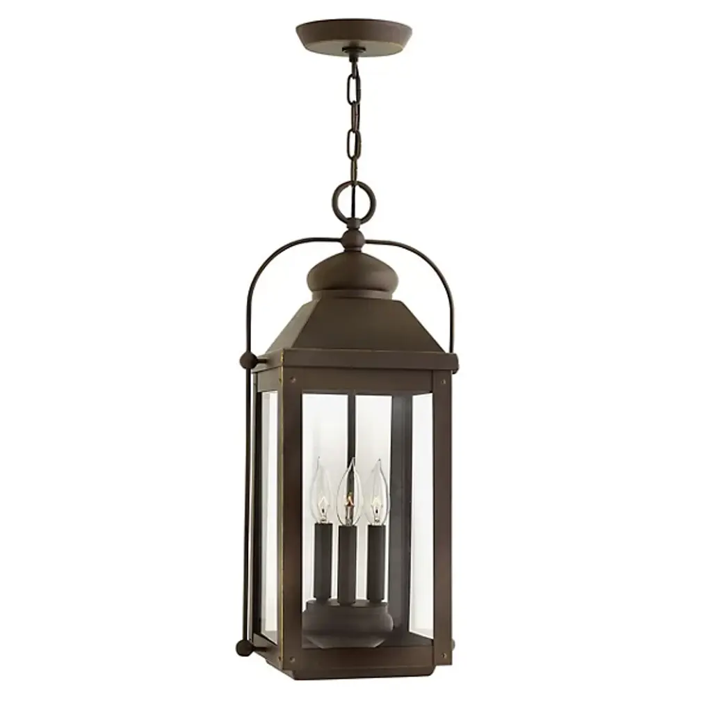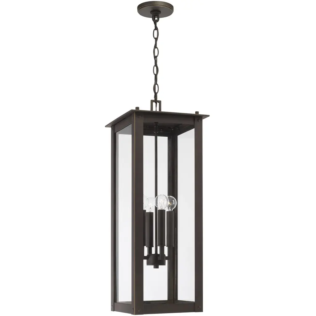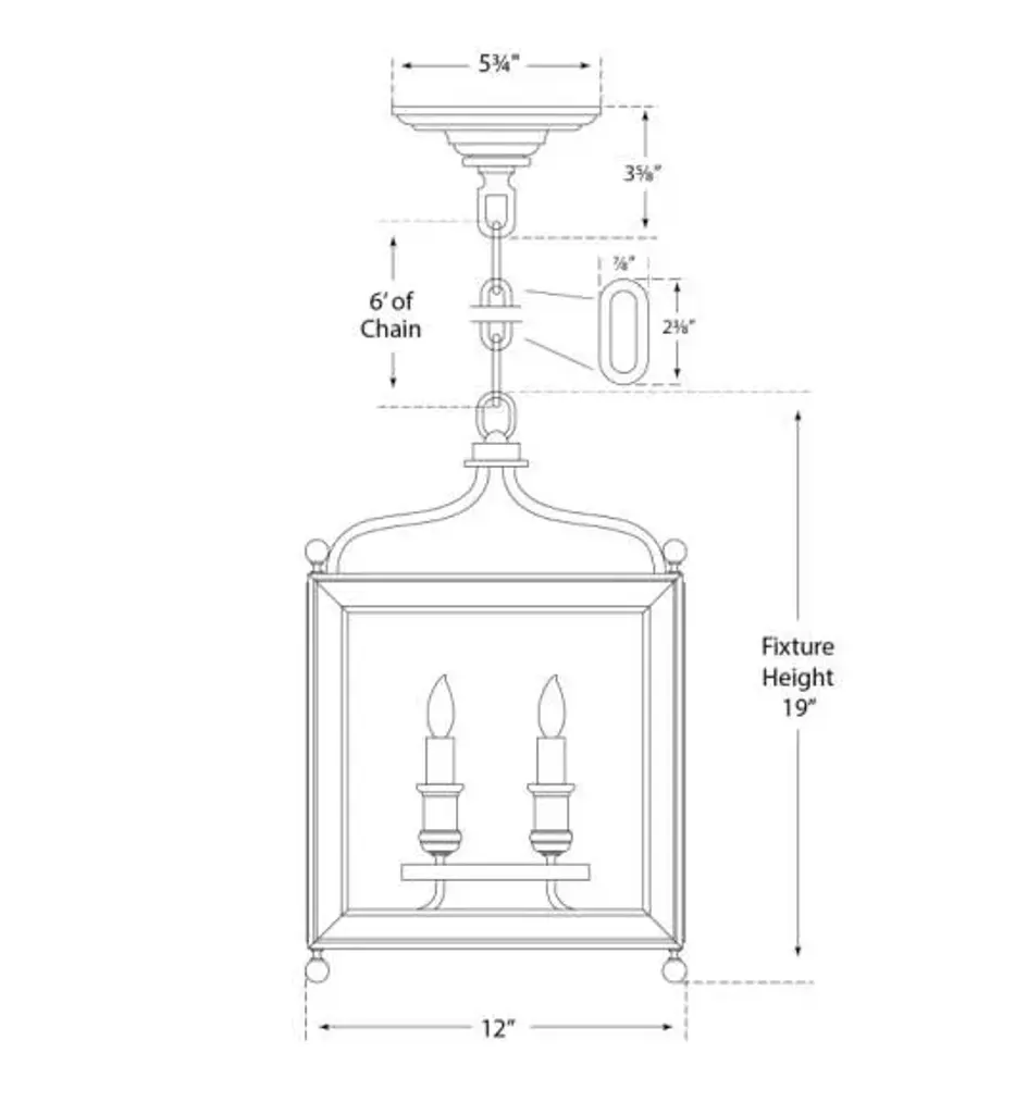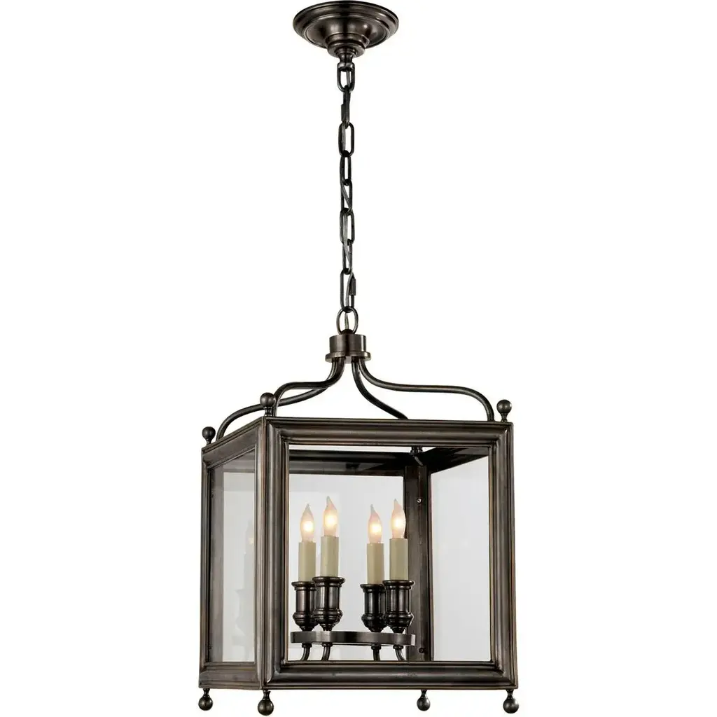 Greggory Small Lantern in Bronze Designer: J. Randall Powers Canopy: 5.75" Round Mounting: Chain Shade Detail: Clear Glass Socket: 4 - E12 Candelabra Wattage: 4 - 60 C11 Safety Rating Location: DRY