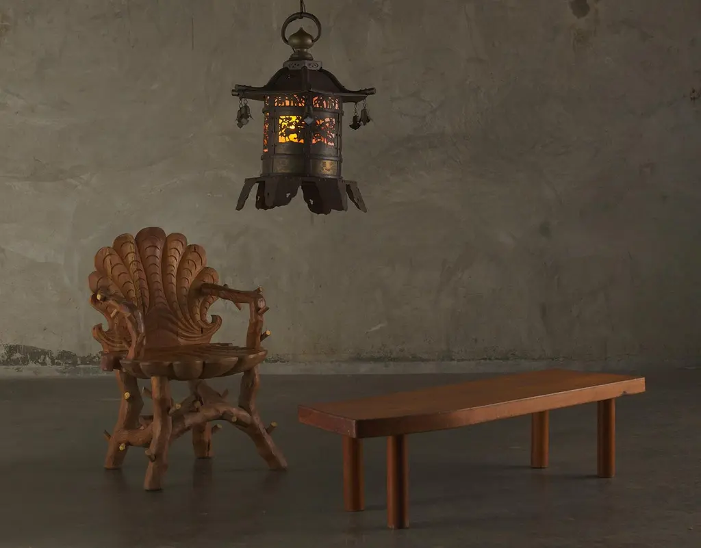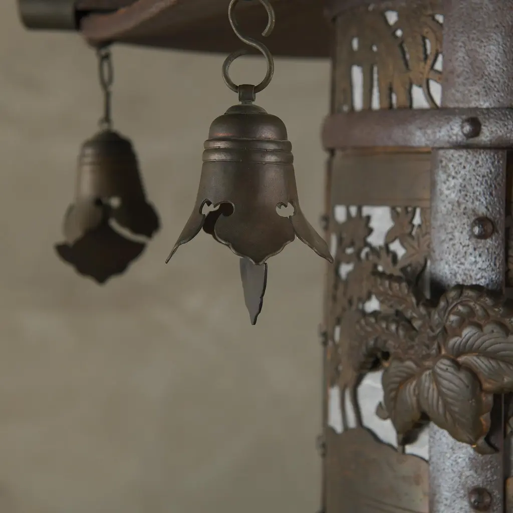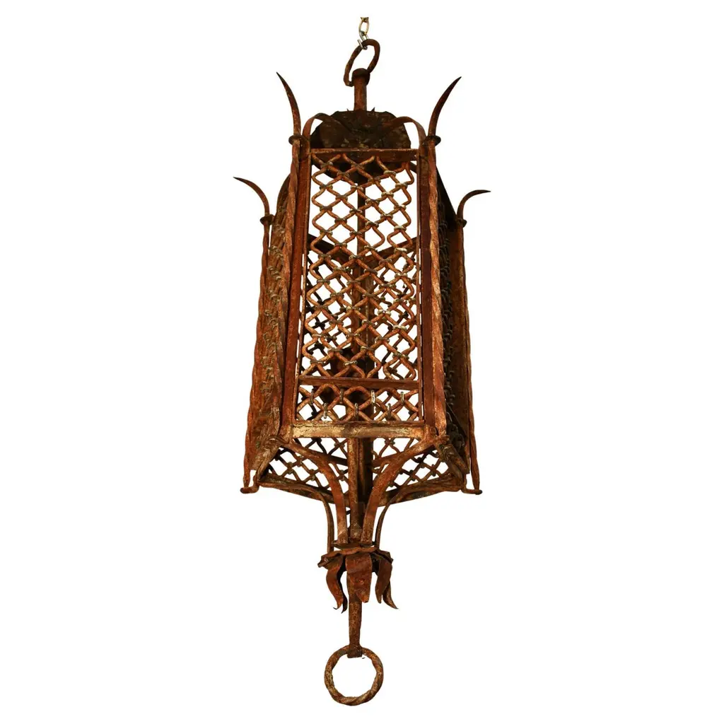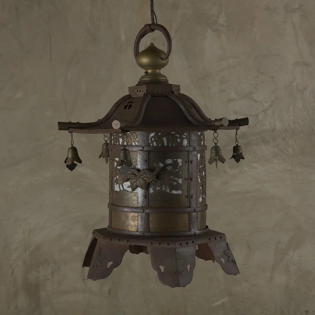 This Japanese lantern is rare and spectacular in its size and ornamental design. A true one of a kind piece. It can be used as a hanging fixture, as seen in the photos or a magnificent table top light.
