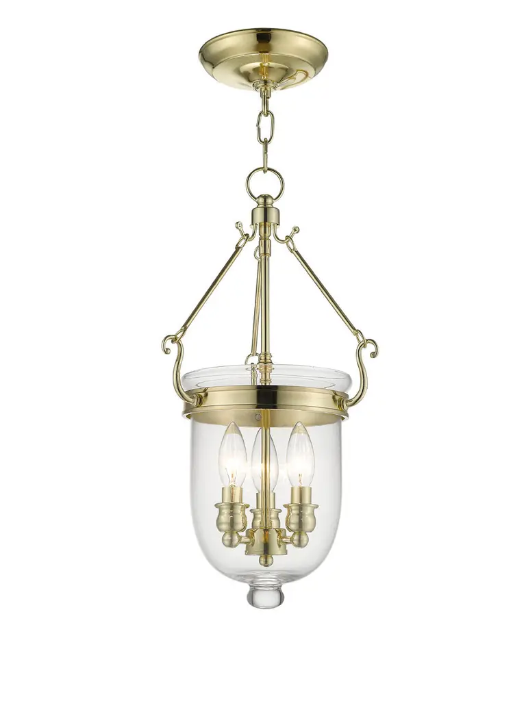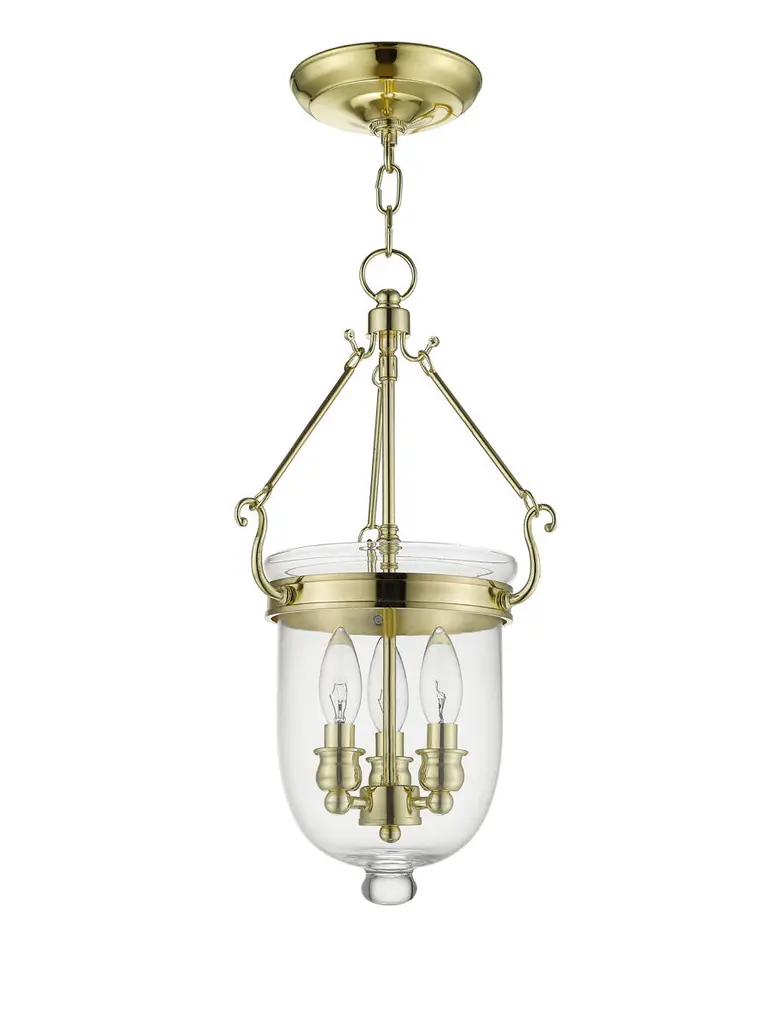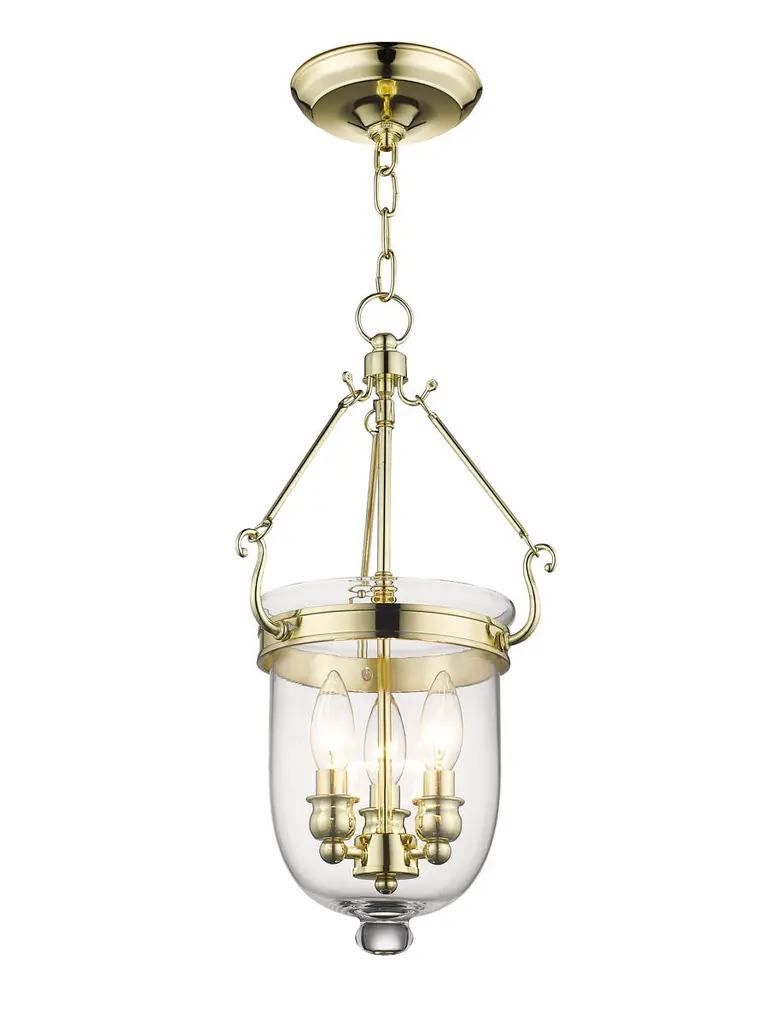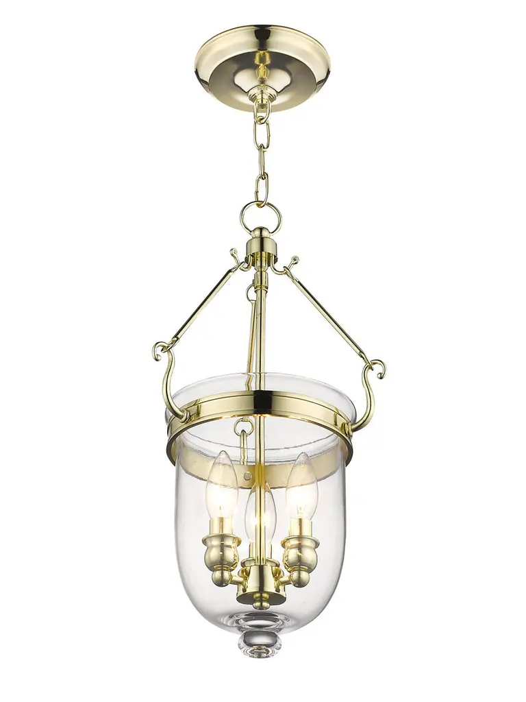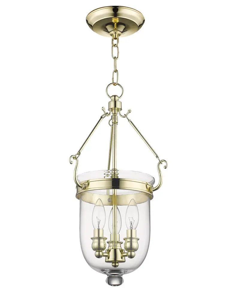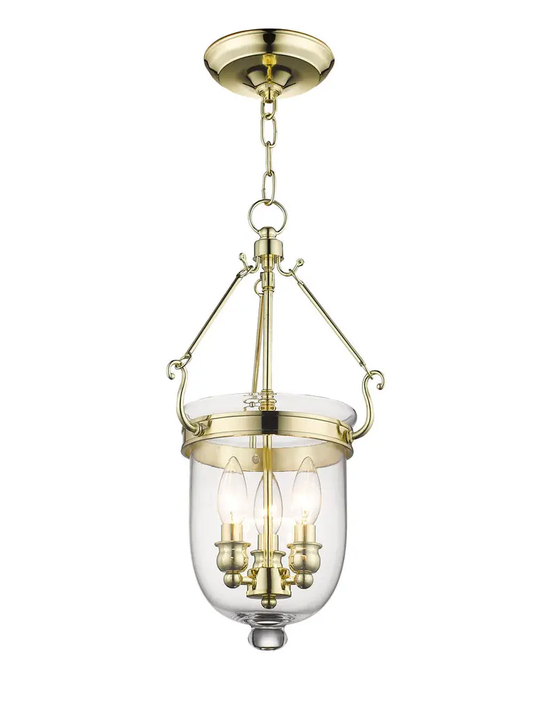 Jefferson 3 Light 10 Inch Polished Brass Chain Lantern