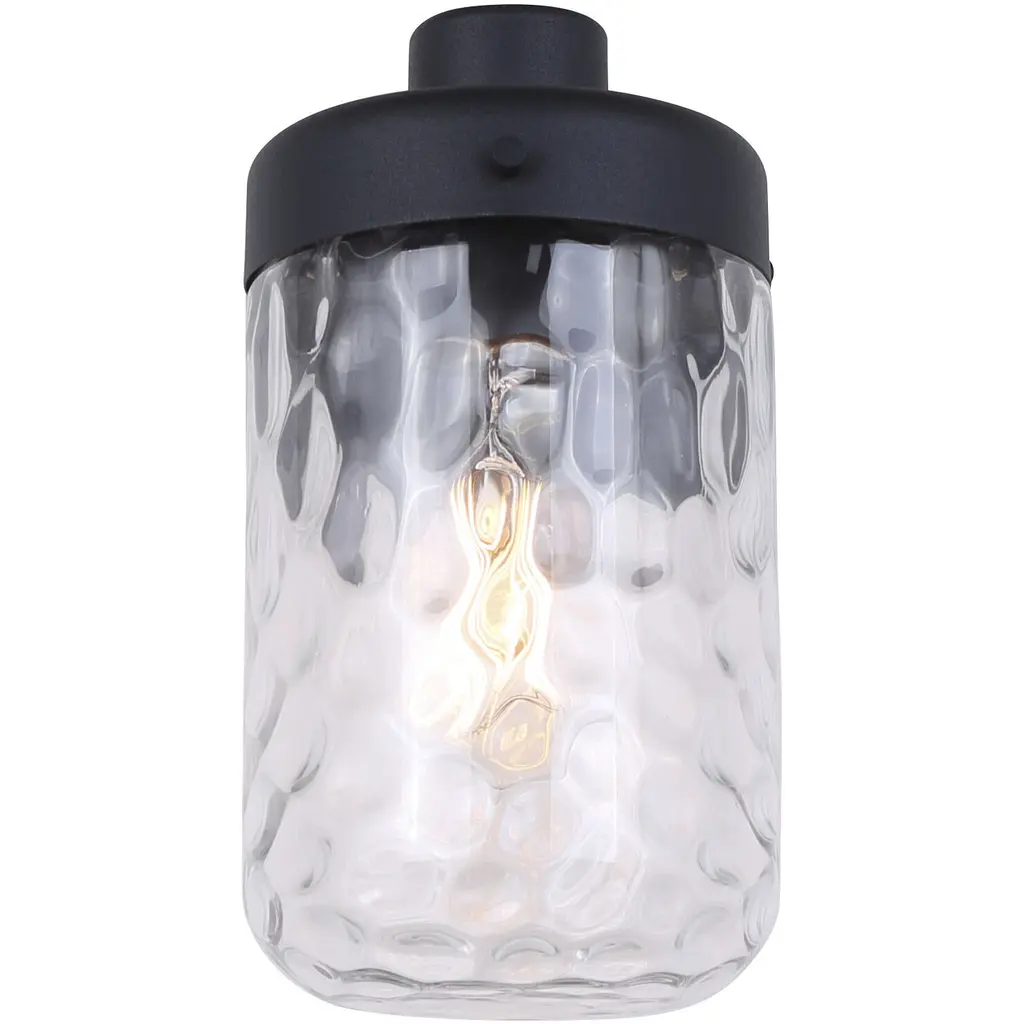 Enhance your outdoor spaces with the JUNO outdoor downlight. Finished in a sand black color, this downlight adds a touch of elegance to your exterior decor. It features clear textured glass, providing a warm and inviting illumination. With a capacity for a single 60W Type A bulb, it offers sufficient brightness for pathways, gardens, or outdoor seating areas. The dimensions measure 5.125 inches in width, 10.25 inches in height, and 7.375 inches in depth, making it a versatile choice for various outdoor settings. Easy Connect Included ensures effortless installation, allowing you to enjoy your outdoor lighting with ease.