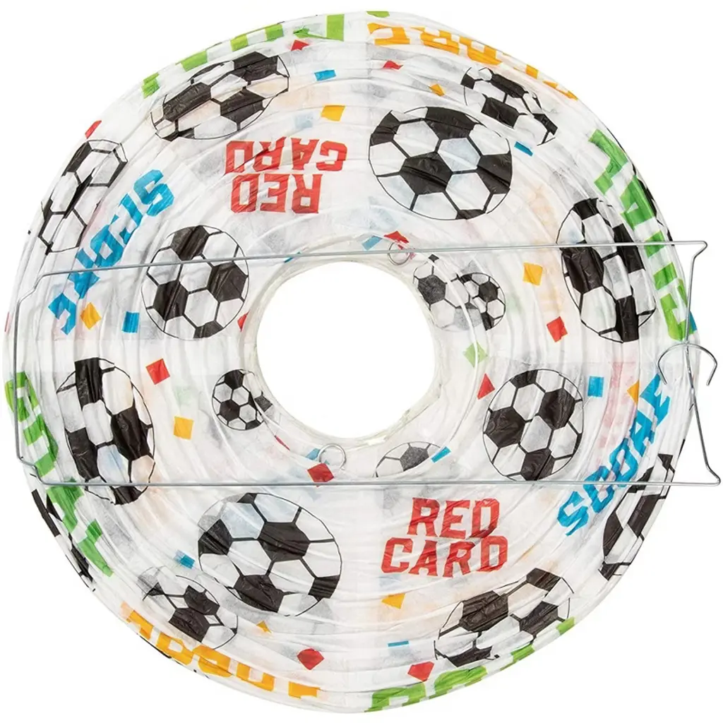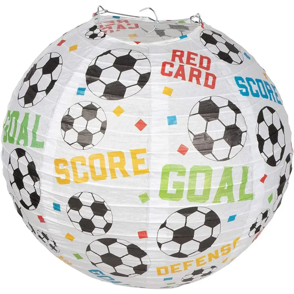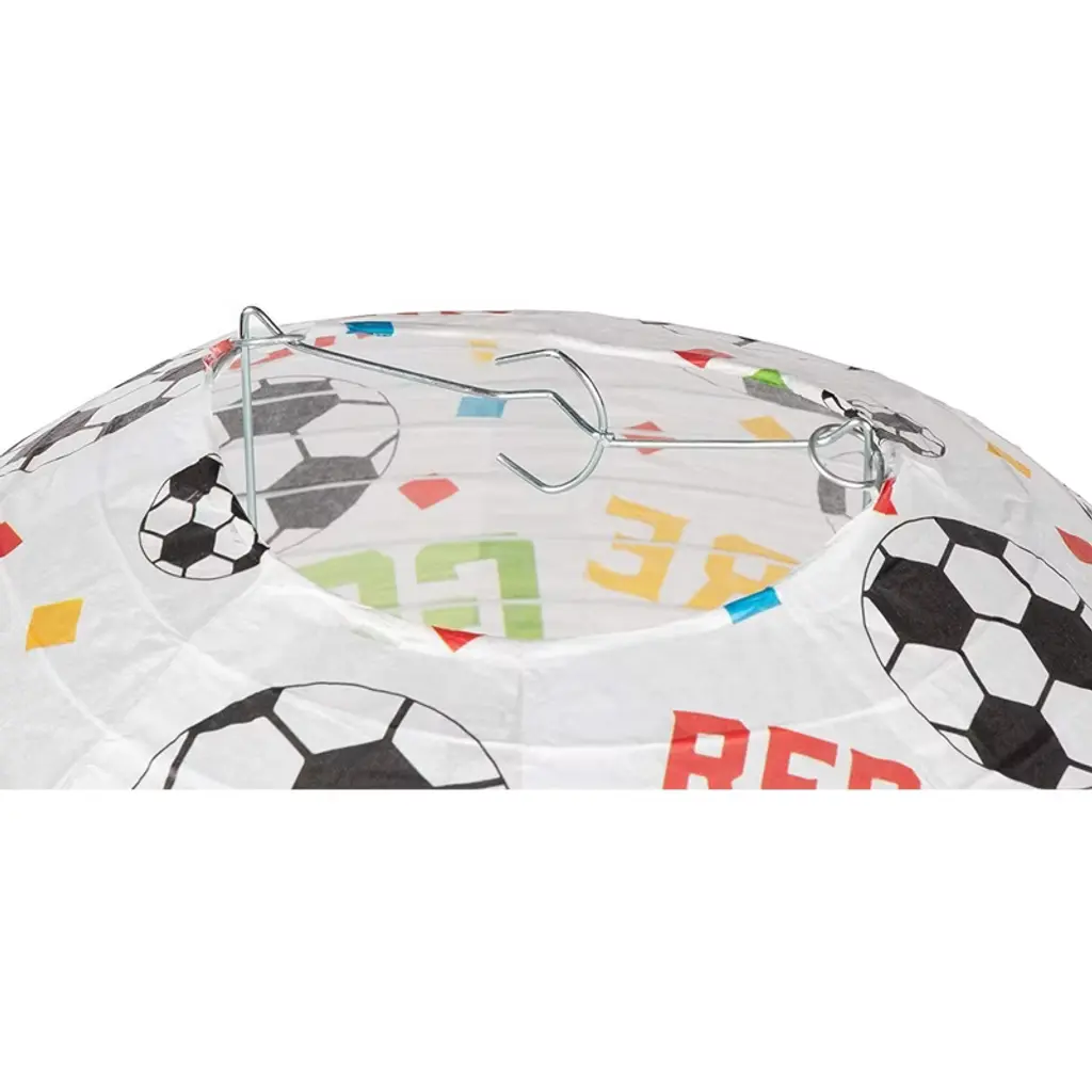 Bring a bright sense of style and fun to your next sports-themed event with this set of 6 soccer paper lanterns. With their round shape, these lanterns are ideal for game nights as well as soccer and sports-themed parties, including kids’ birthday parties. Each lantern has an instruction sheet, and features 4 eyelets, an expander, and cable fixing “C” design for easy assembly. Made from 21 gsm tissue paper, the lanterns are lightweight, durable, easy to assemble and hang. Decorate your party place or any event scene with these soccer lanterns!