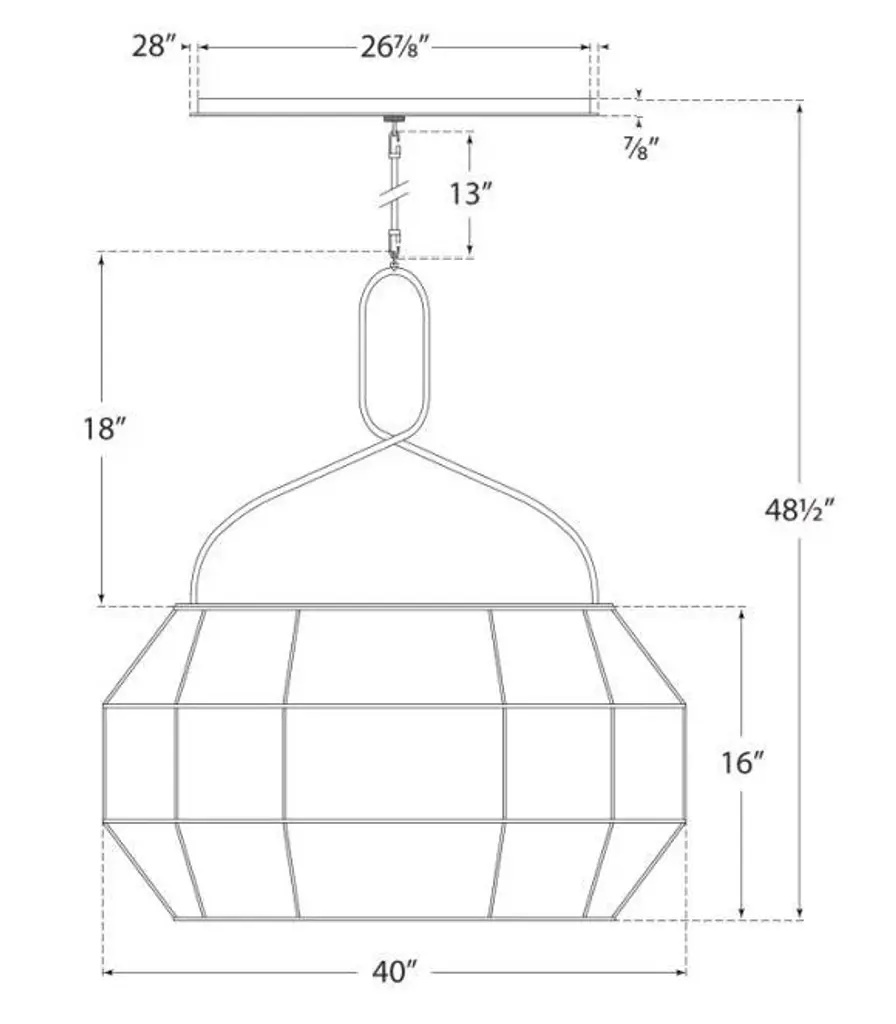 Forza Medium Linear Lantern in Bronze with Gathered Linen Shade Designer: Kelly Wearstler Fixture Height: 33.75" Min. Custom Height: 40.5" O/A Height: 48.5" Canopy: 6" x 28" Oval Mounting: Rod Shade Detail: 40" x 15" x 16" Rectangular Linen Socket: 6 - E26 Keyless Wattage: 6 - 40 T10 Safety Rating Location: Dry