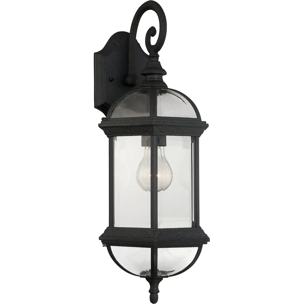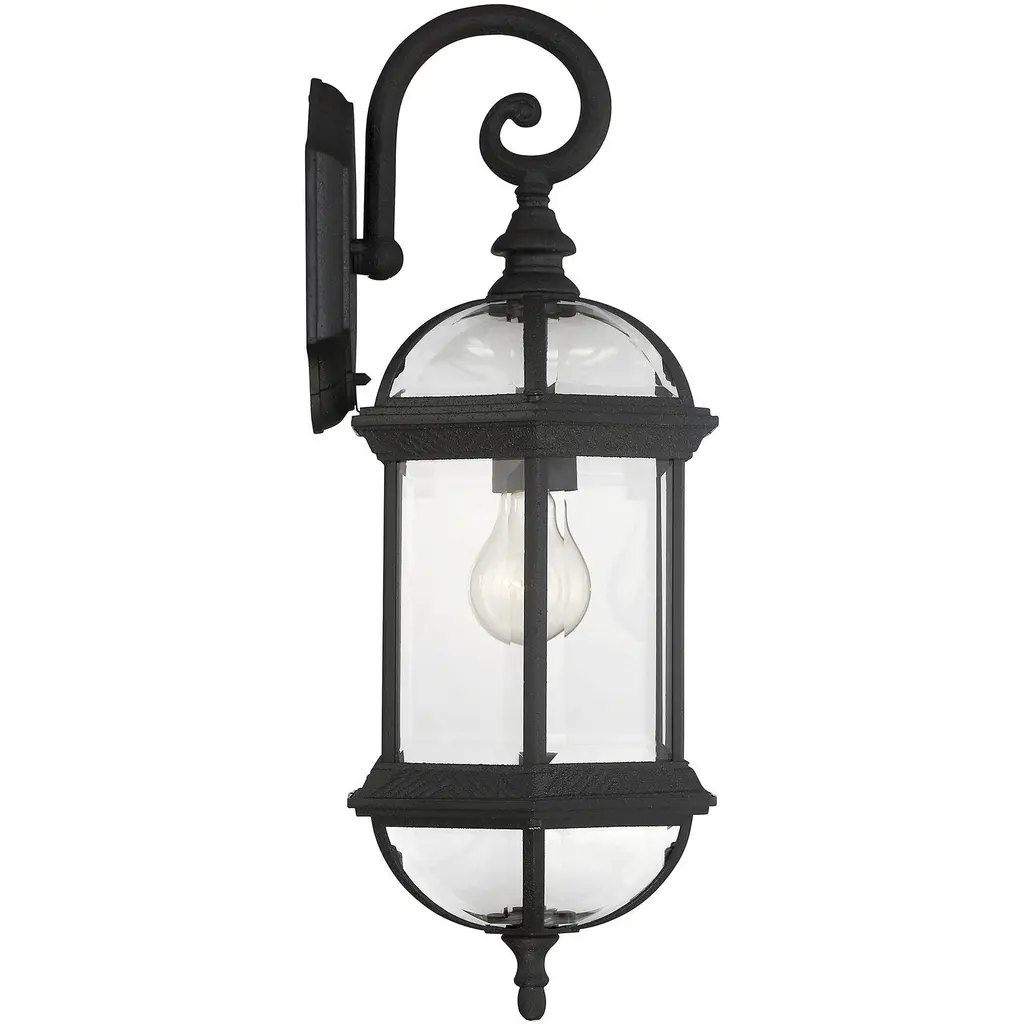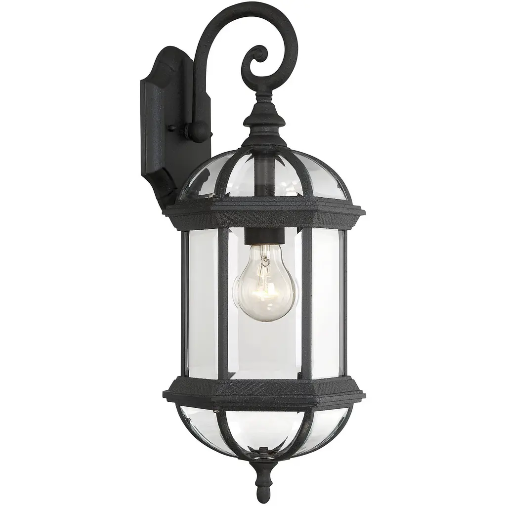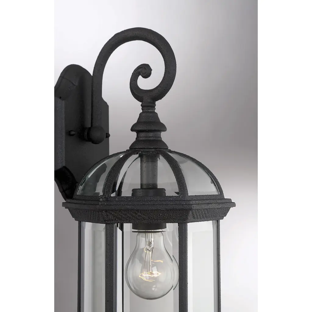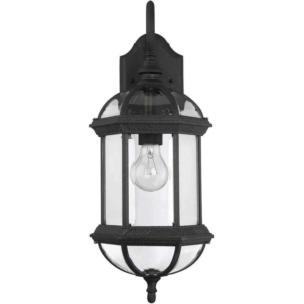Classic exterior fixture available in two finishes - Textured black and Rustic bronze with Clear Beveled glass.