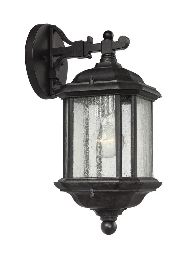 The Kent one light outdoor wall fixture in oxford bronze is an ENERGY STAR½ qualified lighting fixture that uses LED bulbs to save you both time and money. Kent outdoor lighting fixtures by are crafted in die-cast aluminum for added durability to withstand harsh weather conditions. The traditional styling inspired by antique gas lanterns is offered in either Oxford Bronze with Clear Seeded glass, Black finish with Clear Beveled glass, and both finishes with Satin Etched glass. The assortment includes small and large one-light outdoor wall lanterns (with a flat bottom), as well as an additional design of small and large one-light outdoor wall lanterns (with finial on top and bottom) which can be mounted up or down, a one-light outdoor semi-flush convertible pendant and a one-light outdoor post lantern. Both incandescent lamping and ENERGY STAR-qualified LED lamping (for those fixtures with the Satin Etched glass) are available for most of the fixtures, and some can easily convert to LED by purchasing LED replacement lamps sold separately.