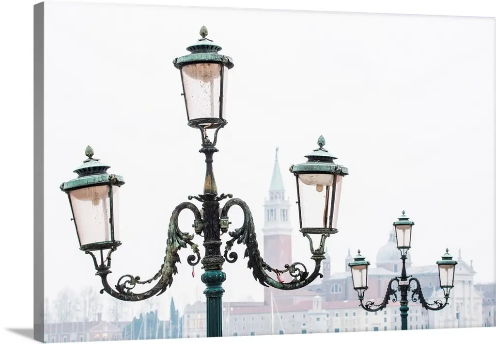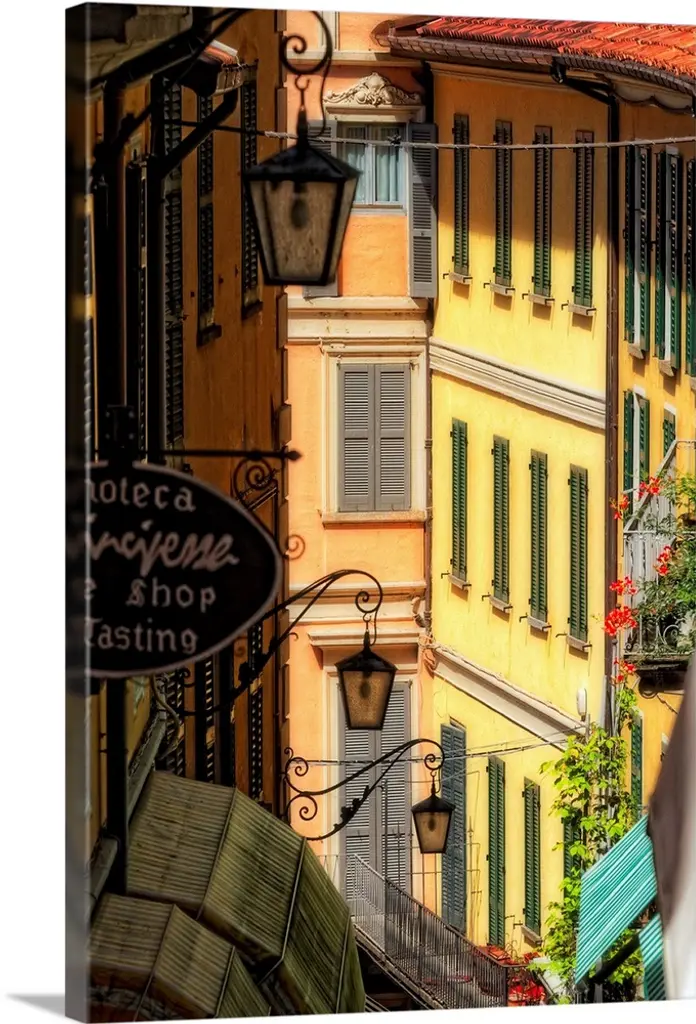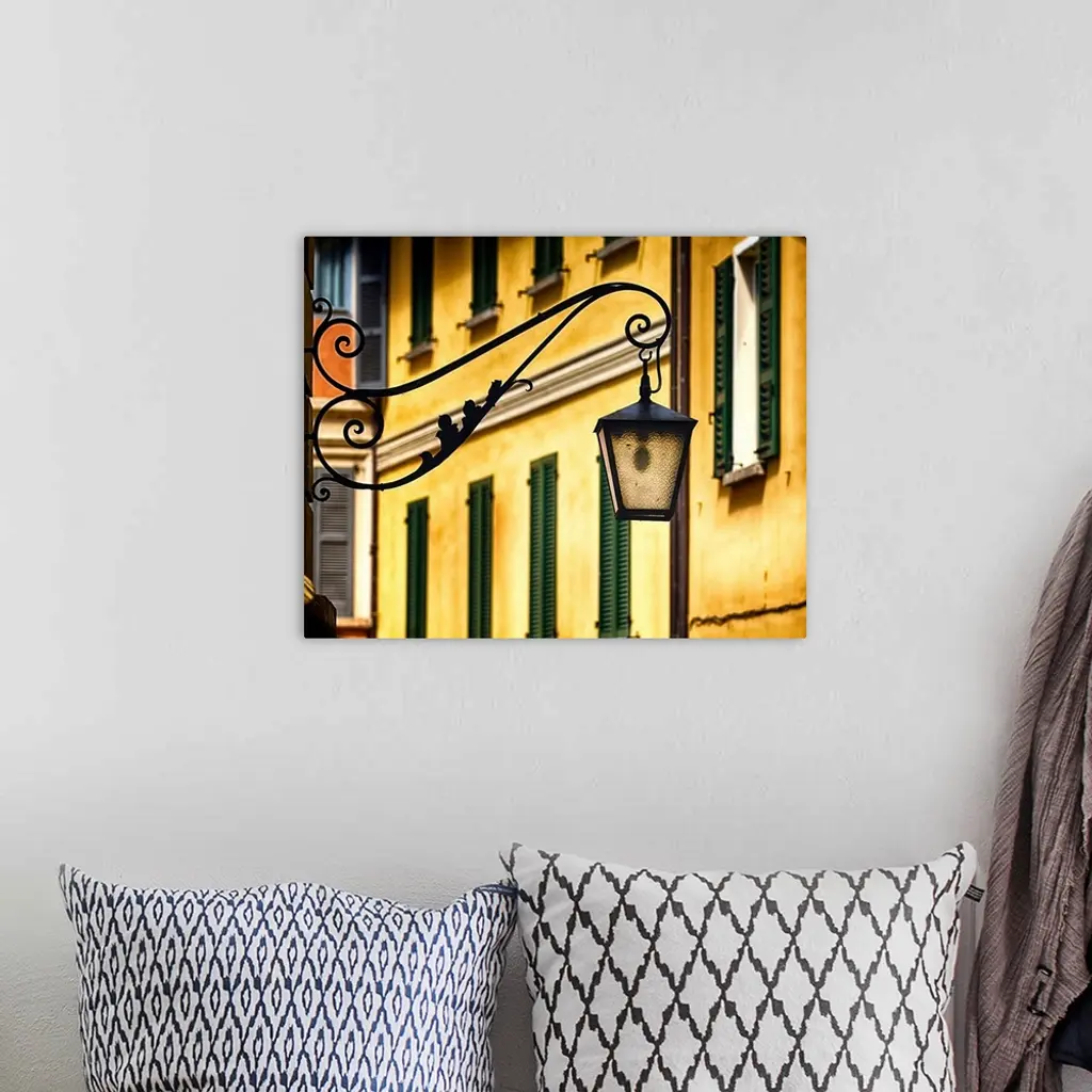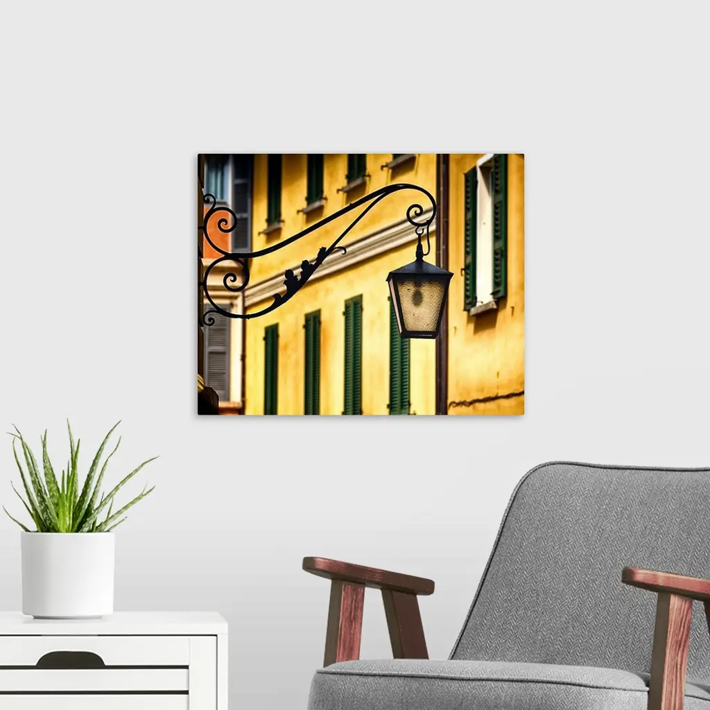 Fine art photo of a lantern on an iron hanger in an Italian city.