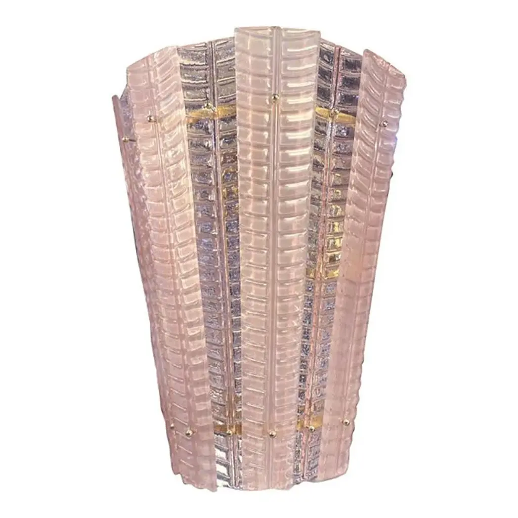 Lantern in pink transparent and sanded murano glass chandelier luxury murano glass lantern in barovier e toso style pink color give it a touch of contemporary and luxury. diameter 50 cm = = 19.7″ height 70 cm = 27.5″ claer and sanded pink murano glass , all made in italy . metal frame on view gold 24k bulbs not included spare parts in murano glass included chandelier wire for usa less up to 250v (europe/uk standard). creator simoeng us plug (up to 110v).