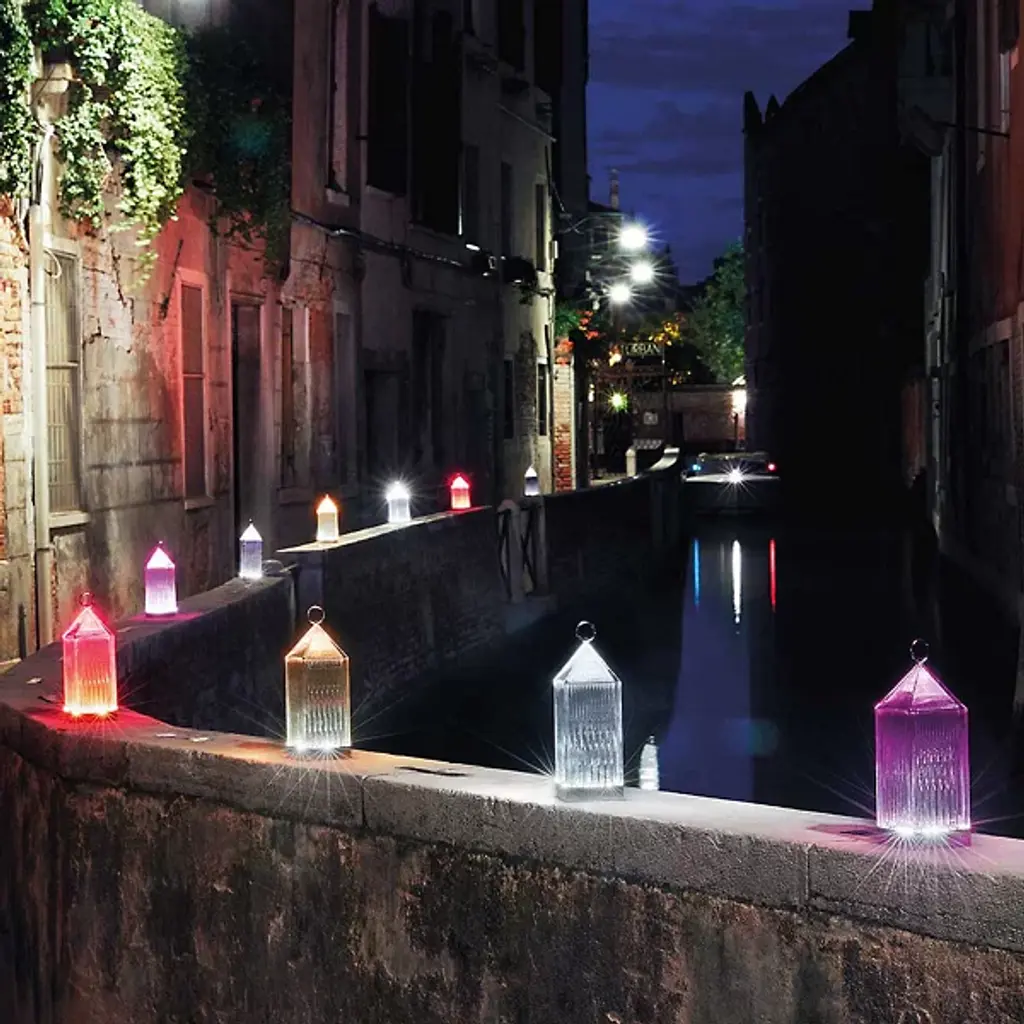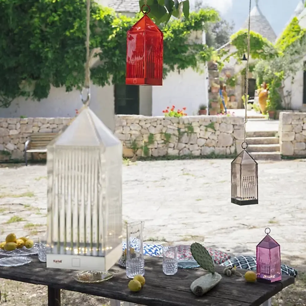 The Lantern LED Lamp by Kartell illuminates any setting with its contemporary take on a classic design. Offered in five vibrant colors and made of mass-dyed and metallic transparent PMMA, the Lantern LED Lamp also features a battery charger. The Lantern LED Lamp will accent any modern space.