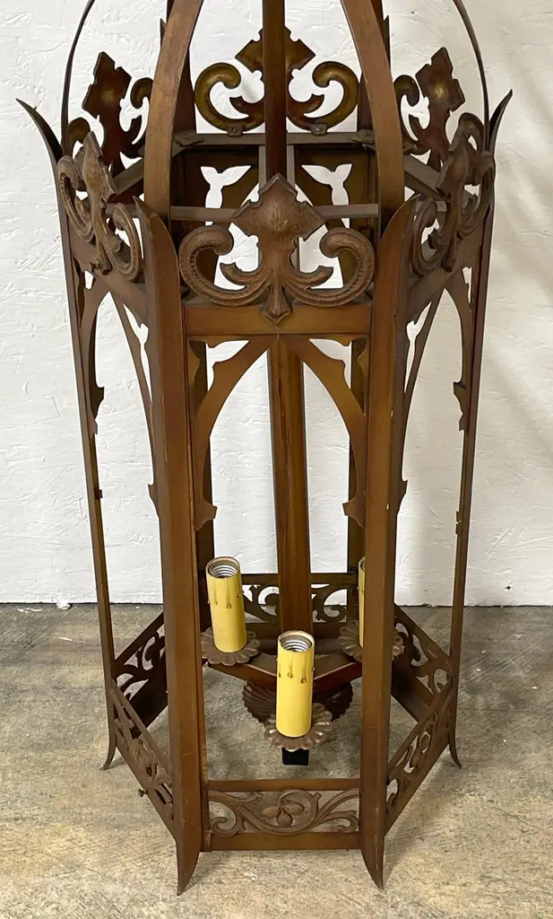 Large Patinated Gothic Style Hexagonal Lantern, Rewired, Second Available