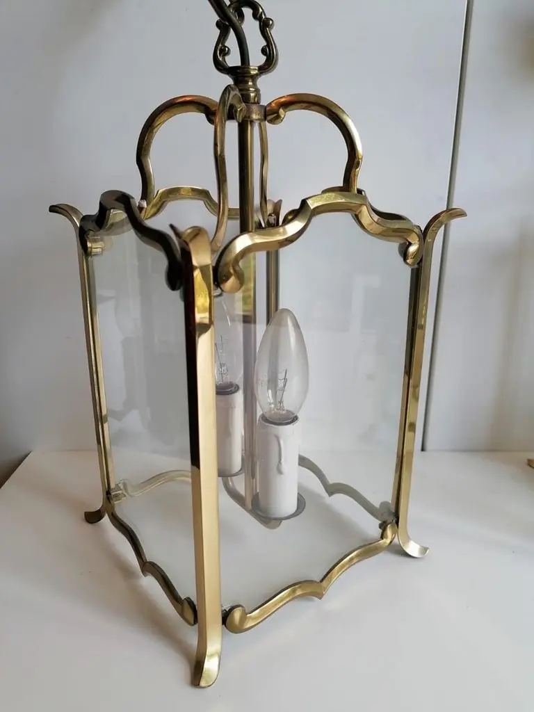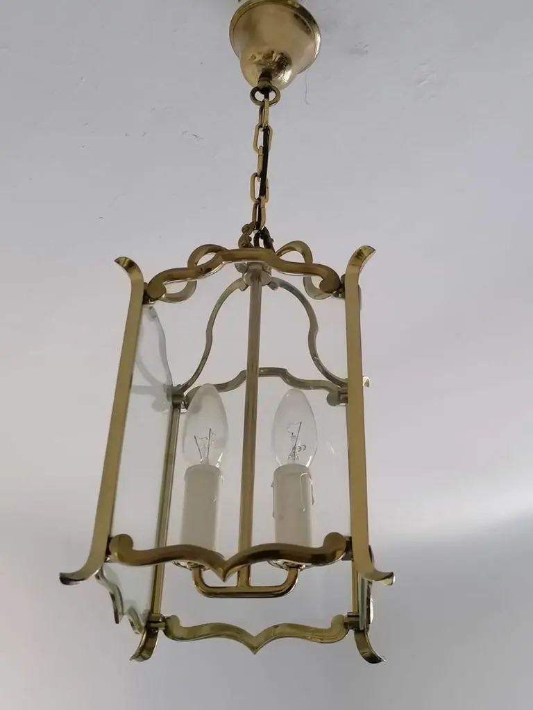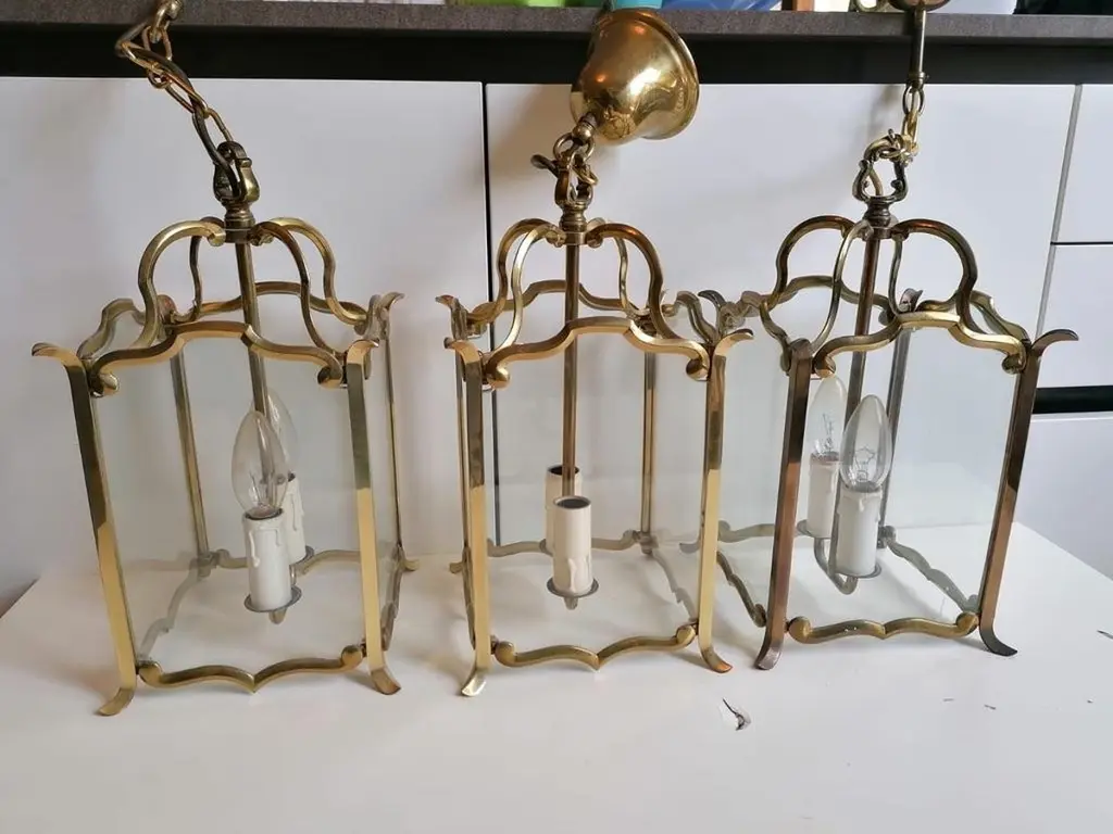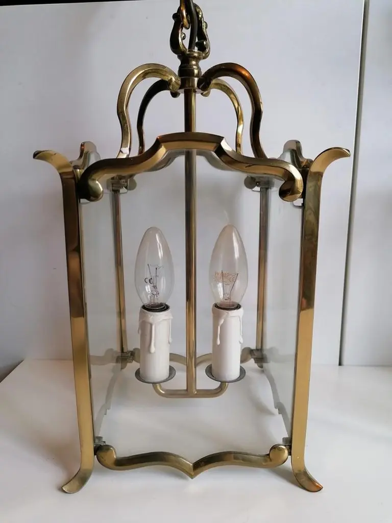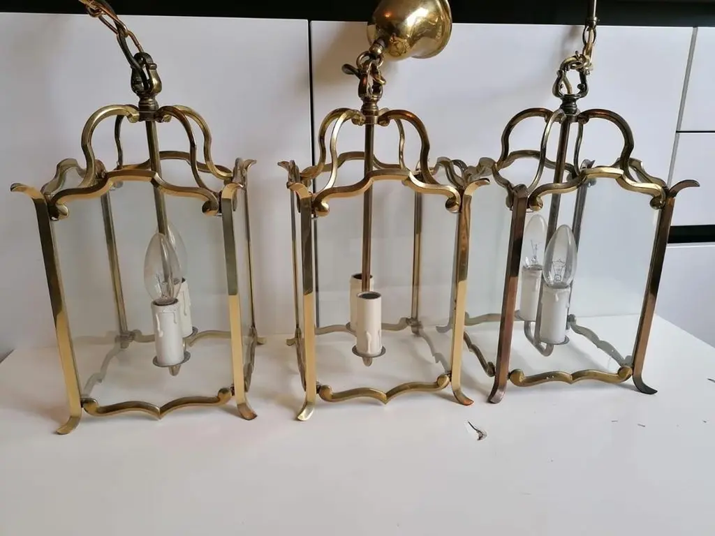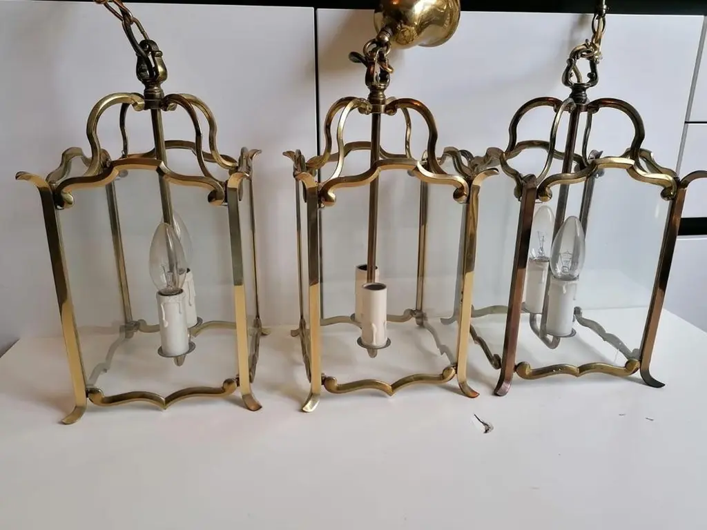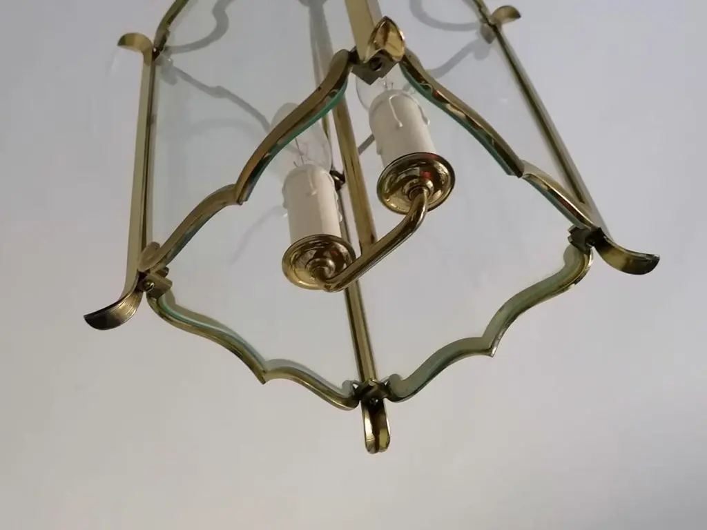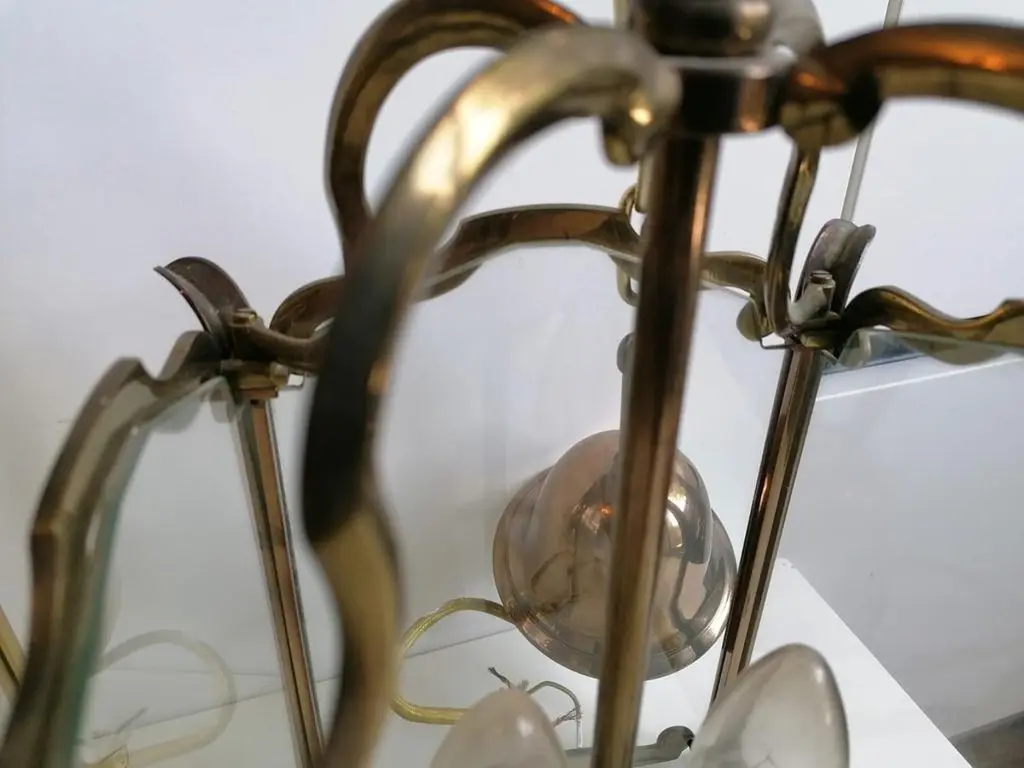 Lantern with painted steel and brass frame with four glasses and three E14 sockets vienna from the 1960's.price per piece, up to 3 available.
