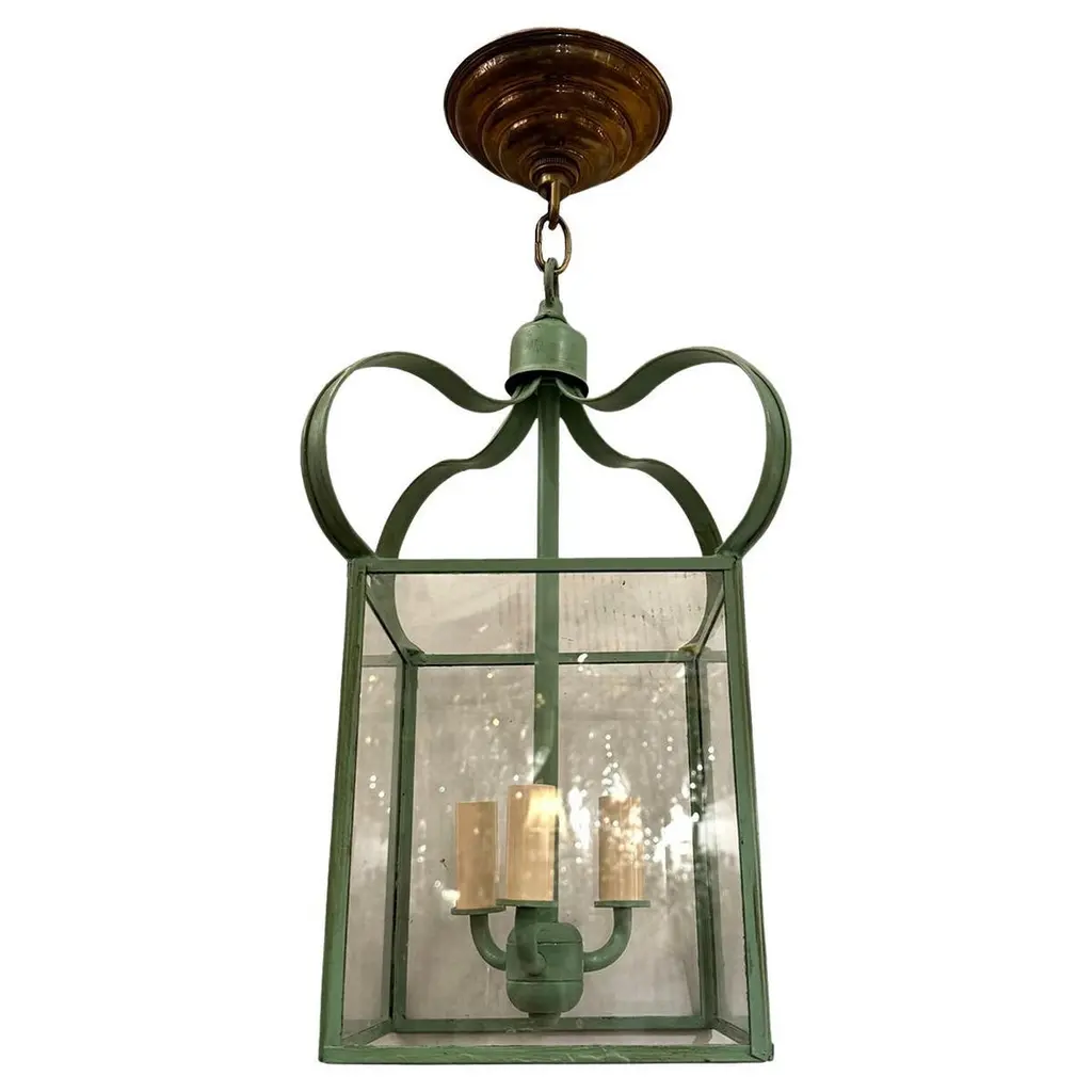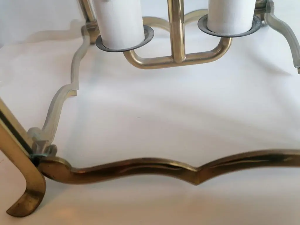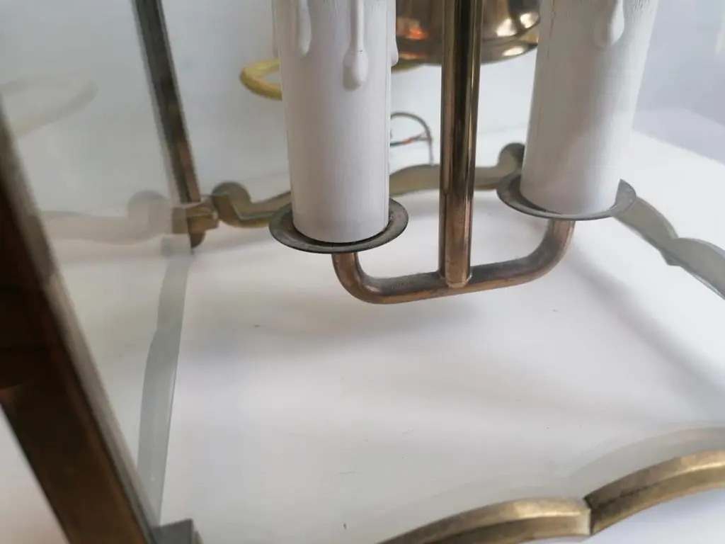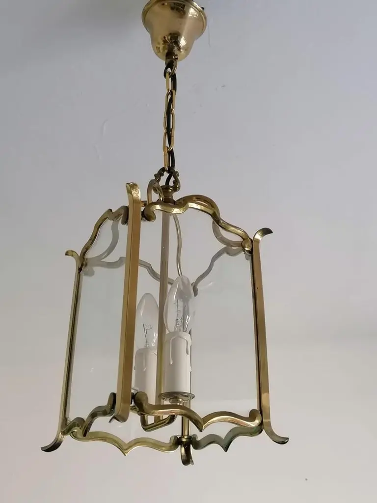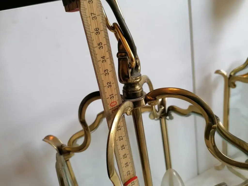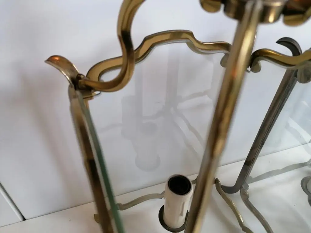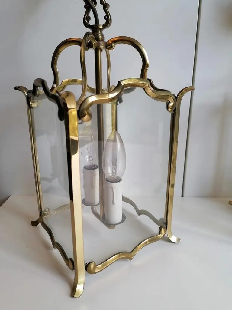 Lantern with painted steel and brass frame with four glasses and three E14 sockets vienna from the 1960's.price per piece, up to 3 available.