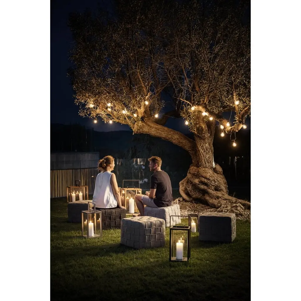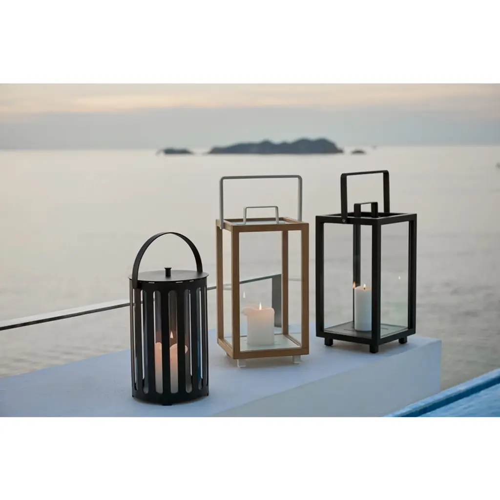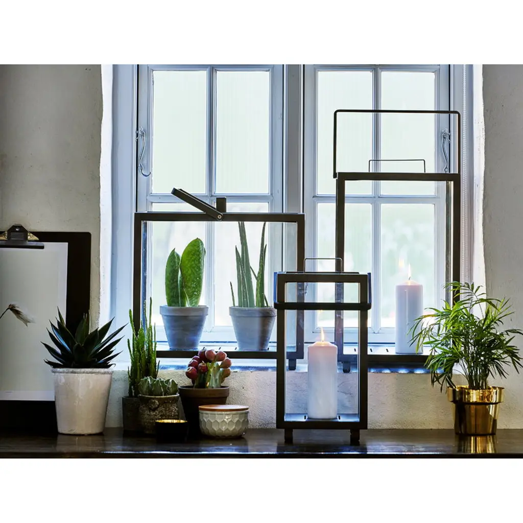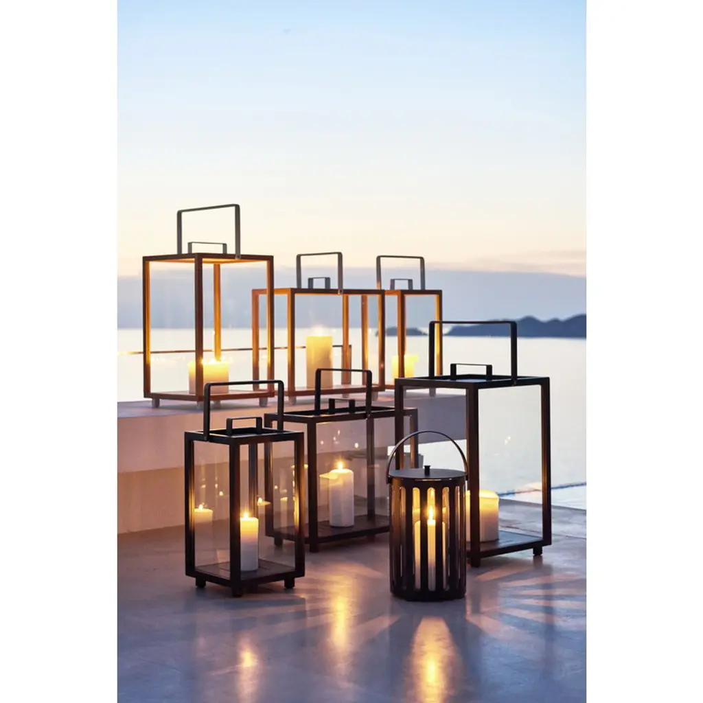 The Lighthouse lantern by Cane-line is the cream of the crop for any terrace or garden setting. Made out of dark aluminum and clear glass, the lantern is a safe and elegant way to create a warm atmosphere inside or outdoors. Enjoy Scandinavian design and darkening nights while watching the gentle fire flicker. Besides a lantern, Lighthouse can also be used as a mini greenhouse for herbs, cactuses, and other houseplants.