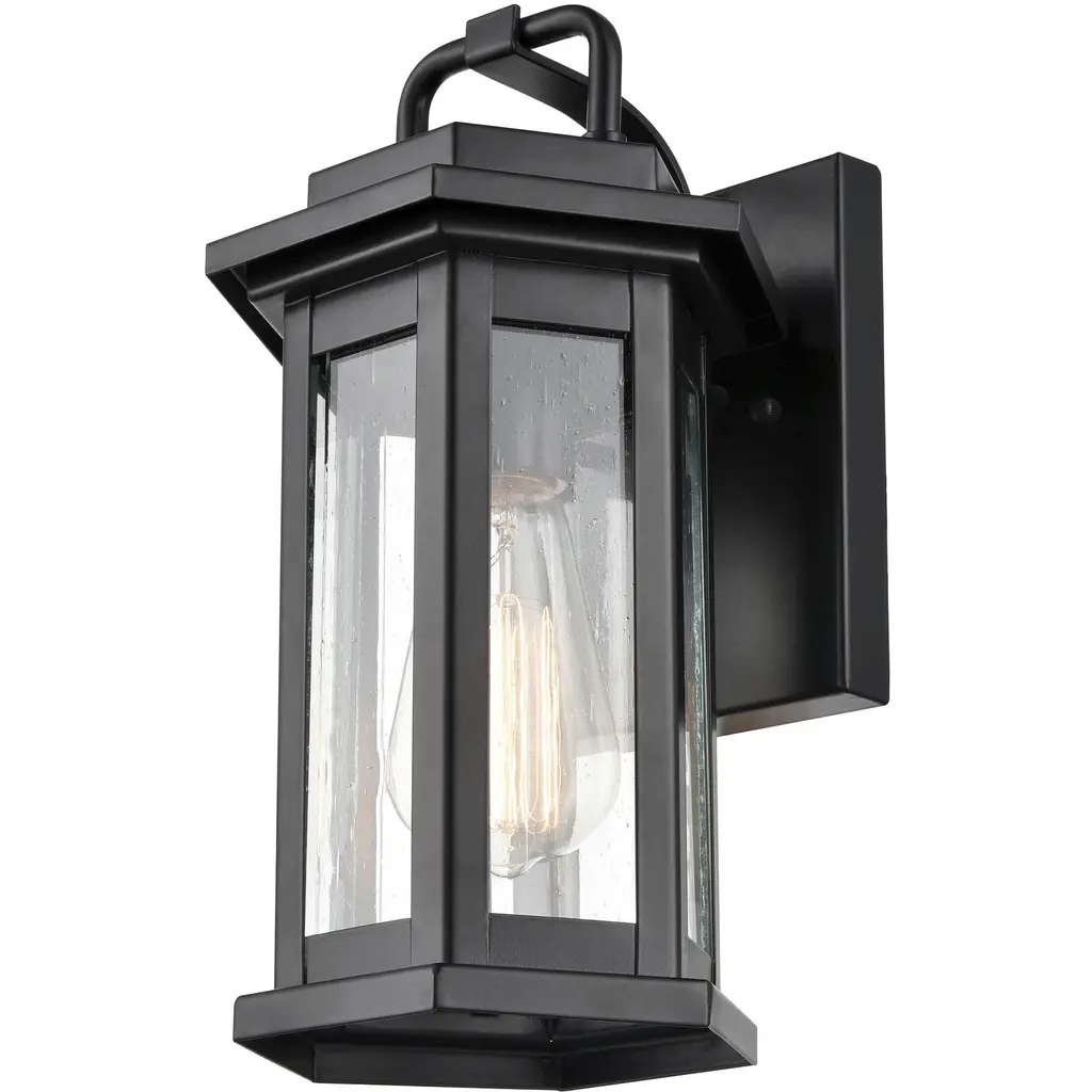 Linton 1 Light 12.63 Inch Textured Black Outdoor Wall Lantern, Small