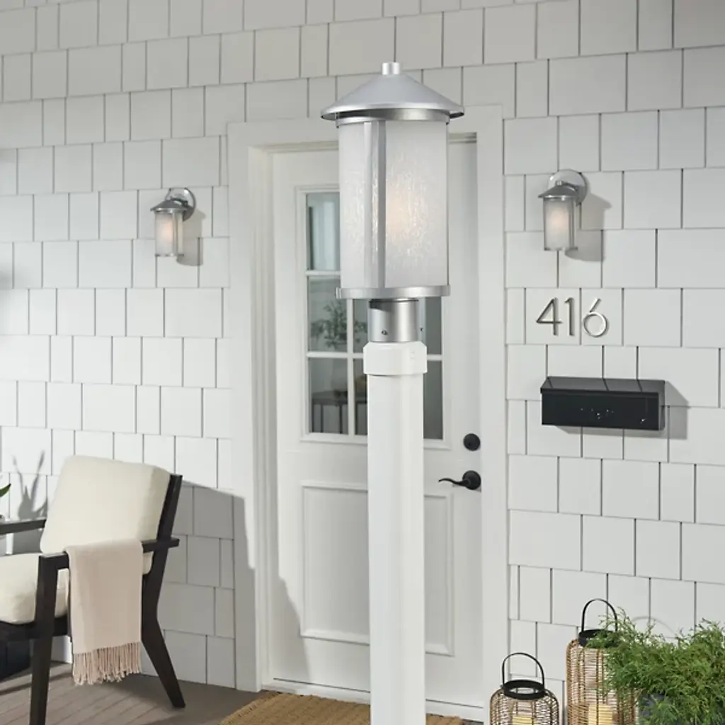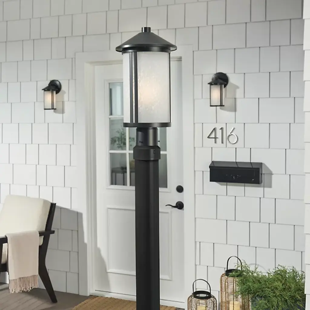 The Lombard Outdoor Post Lantern from Kichler adapts industrial lighting principles for landscape illumination. Its robust aluminum construction establishes a strong foundation, while satin-etched seeded glass diffuses light with subtle texture patterns. When mounted on posts, this lantern provides optimal illumination for pathways and driveways without harsh glare. The glass treatment creates gentle gradients that enhance outdoor spaces while maintaining clear sightlines. This post light’s multiple glass panels work in concert to distribute light evenly across exterior areas, ensuring reliable nighttime visibility.