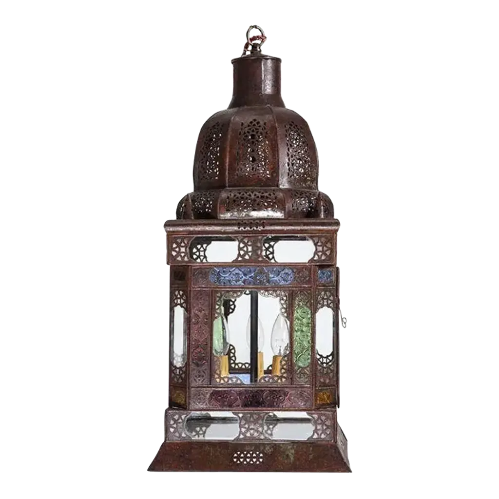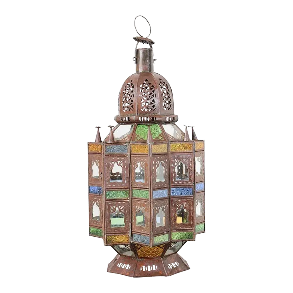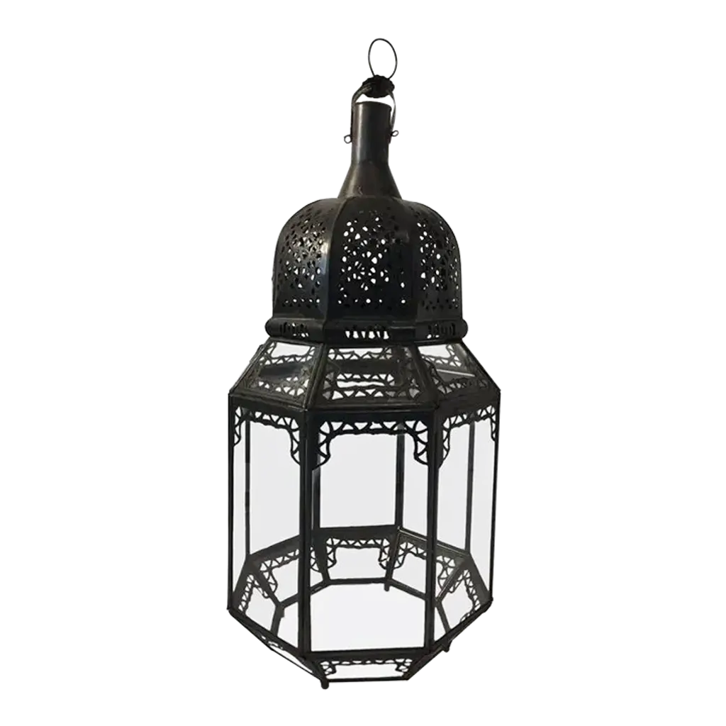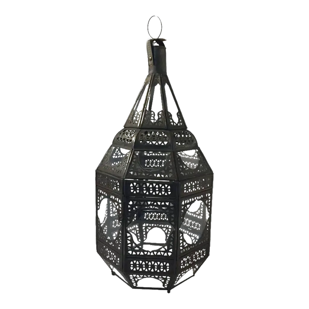 Accent your home décor with this battery-operated bronze metal lantern. This Moroccan-style round metal lantern features an intricate cut-out design with an oil-rubbed bronze finish. The interior of the lantern contains a clear, plastic lightbulb with steady, warm white fairy lights that shine through the cut-outs to cast a beautiful pattern. The lantern includes a handle, making it perfect to hang on an indoor shepherd's hook or a bracket for a wall or ceiling. You can also place the lantern on a shelf, tabletop, or floor. Flameless lanterns add lovely accent lighting to a special event, dinner party, or everyday home décor. Lantern requires 3 AAA batteries (not included).