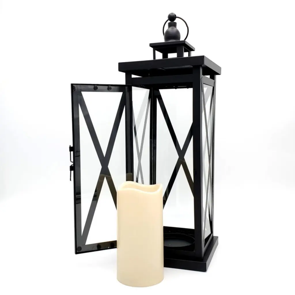 Lumabase Metal Lantern With Battery-operated Candle - Black Crisscross