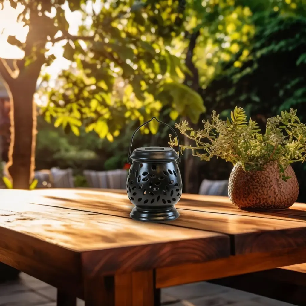 Lumabase Solar-powered Black Ceramic Lantern With Led Light