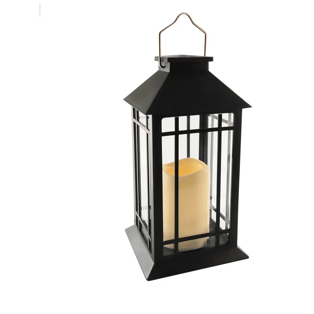 Charged by the sun, this classic solar-powered lantern will highlight the look of your outdoor décor from dusk until dawn. The flickering amber LED light adds a warm glow of illumination. This lantern can be placed anywhere outdoors without extension cords. The sturdy plastic and glass construction makes this lantern perfect for the outdoor elements. Keep lantern in a sunny area every day to charge the panel for nighttime illumination. With a handle, this lantern can hang from a shepherd’s hook and displayed along a walkway.