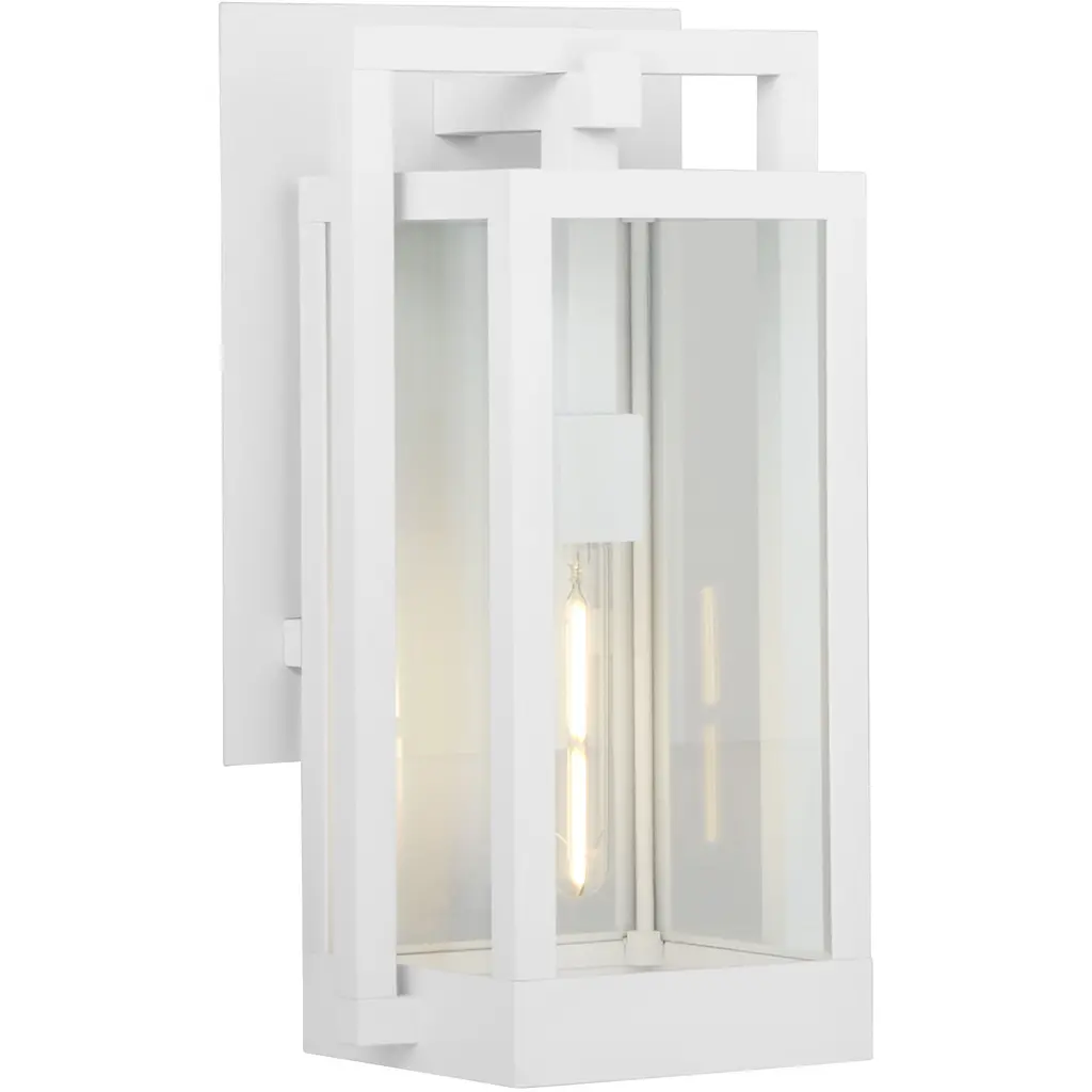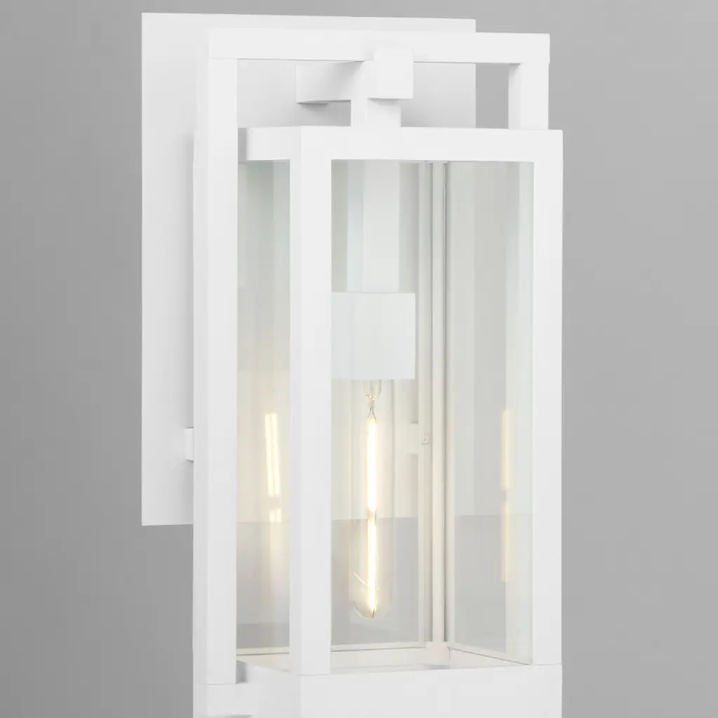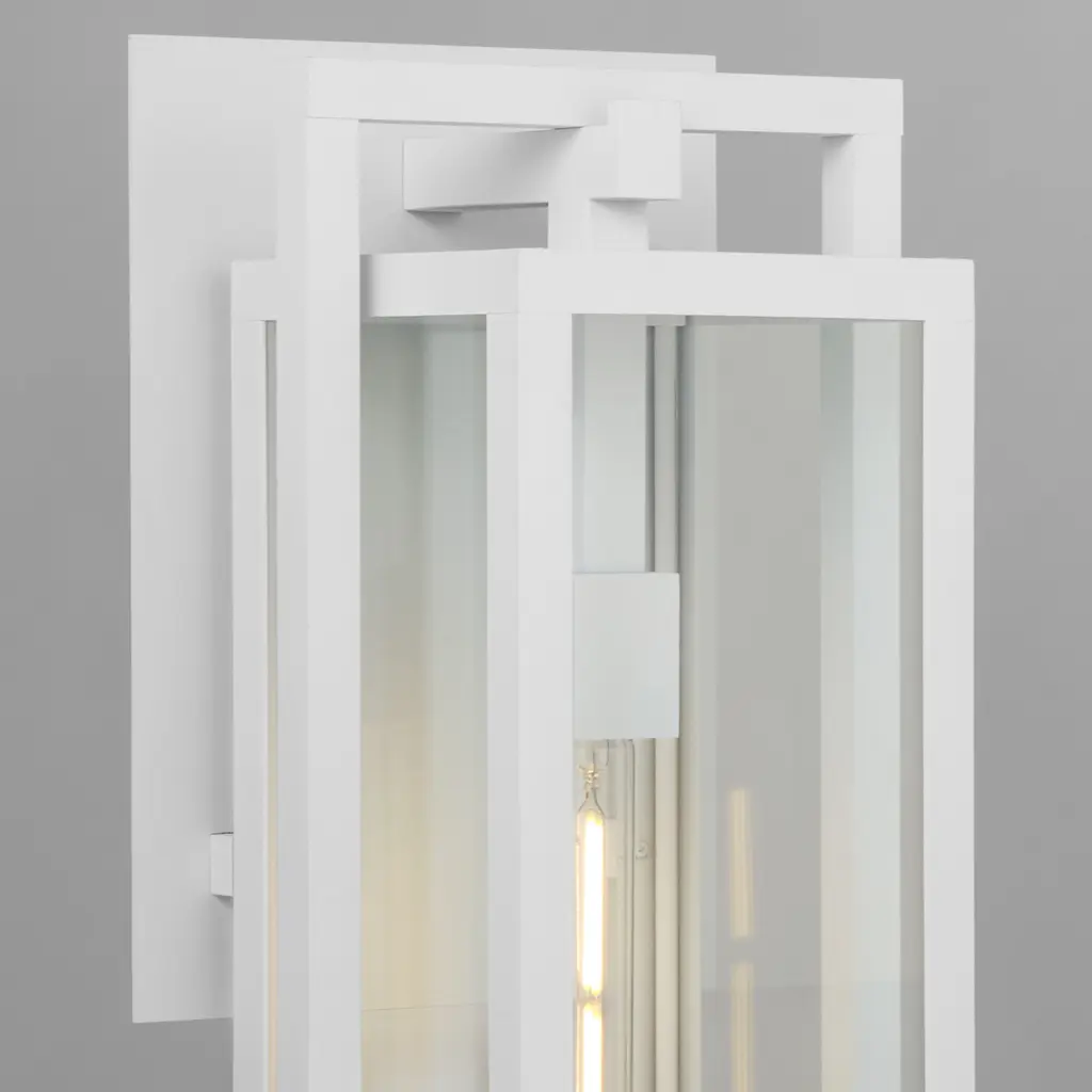 Interloping rectangles in a white finish allow the Marco family of lights an enhanced edge on style, while coastal grade materials provide the ability to weather the elements. Geometric intrigue coupled with a sturdy build adds comfort and style to any patio or front door area.