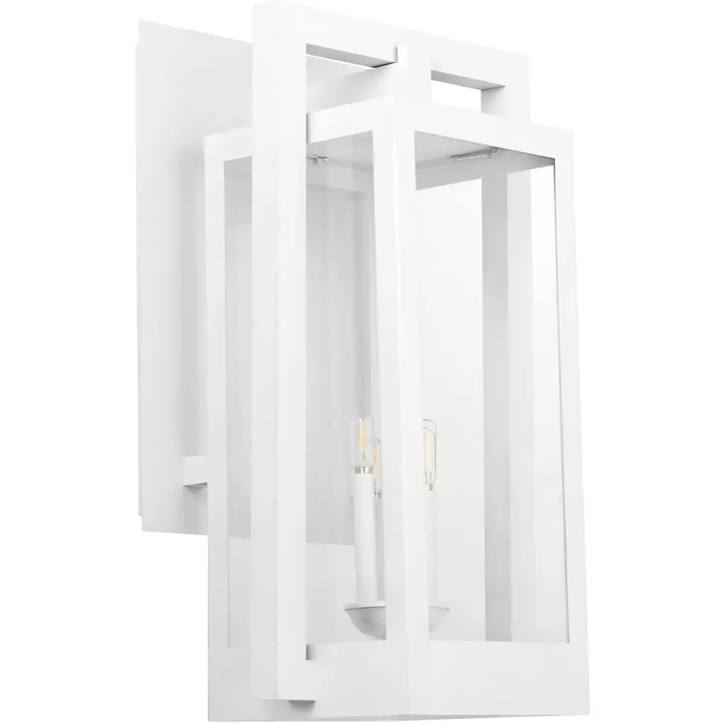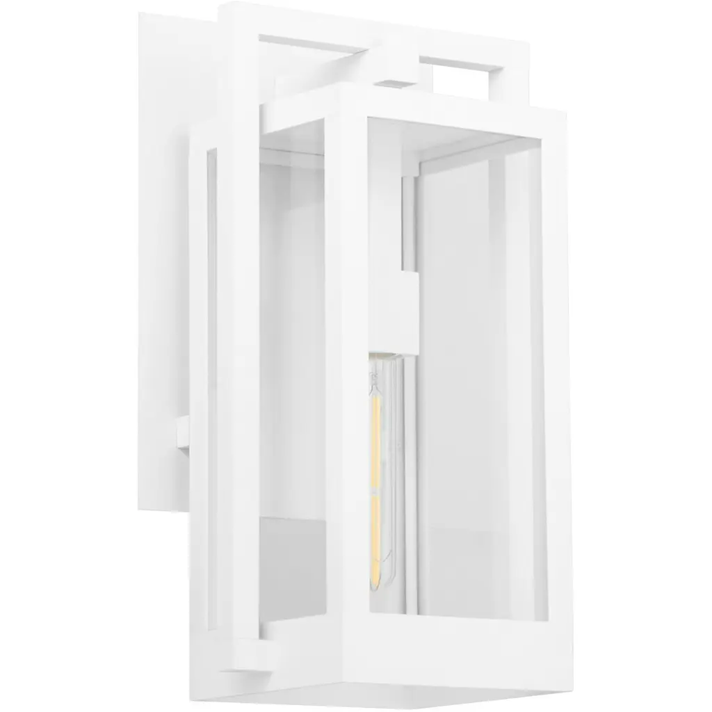 Interloping rectangles in a white finish allow the Marco family of lights an enhanced edge on style, while coastal grade materials provide the ability to weather the elements. Geometric intrigue coupled with a sturdy build adds comfort and style to any patio or front door area.