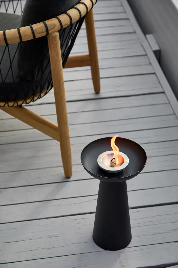 Featuring a classic shape inspired by ancient torches, the Meira Oil Lantern (2021) adds instant ambiance to outdoor gatherings. Made of powder-coated steel, this lantern emits a large, wide flame from its center. The refillable oil chamber comes with a removable plastic cap to prevent water from getting inside when not in use. Made in China.