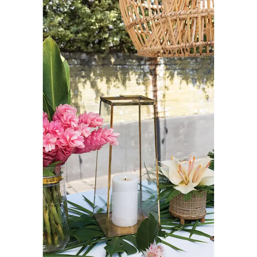 In iron with a gold finish and modern silhouette, the lantern comes in 3 sizes and is a unique choice for your next wedding or event.
