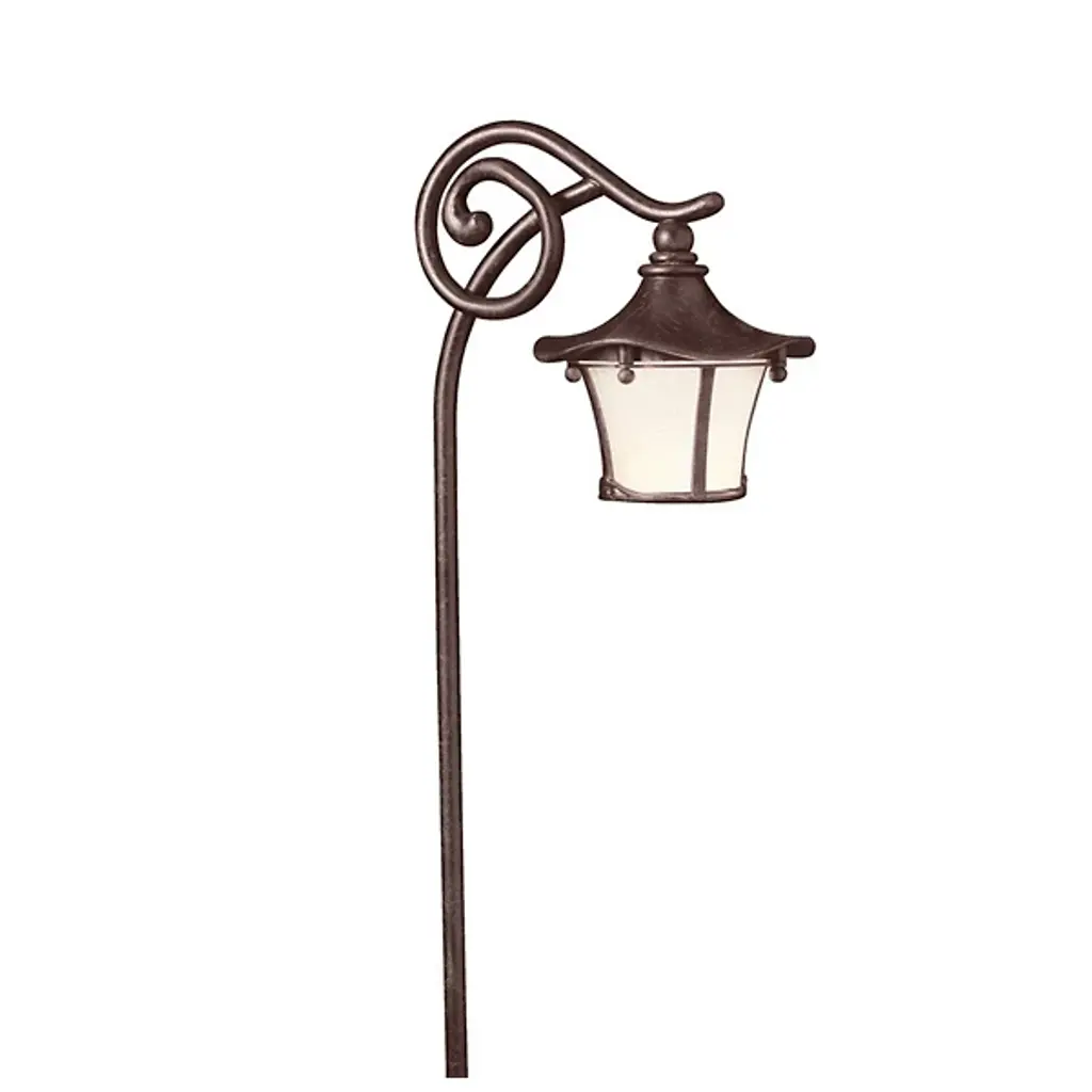 Its straight lines and bold brass design gives the Kichler Mission Lantern a strong Arts and Crafts personality. Satin etched glass provides a warm, diffused light for the pathway or gardenscape. Finished in a natural-looking Patina Bronze to better blend with the outdoors.