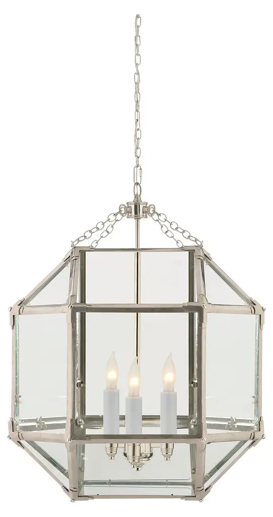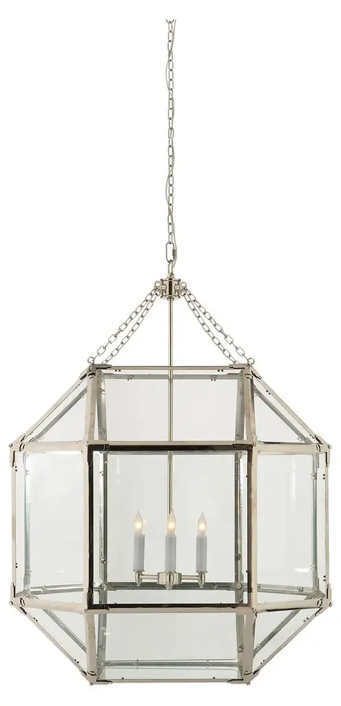 Available online exclusively at One Kings Lane: This fixture from designer Suzanne Kasler is crafted of brass with a strong geometric form, polished nickel finish, and clear glass panes. Hardwired.
