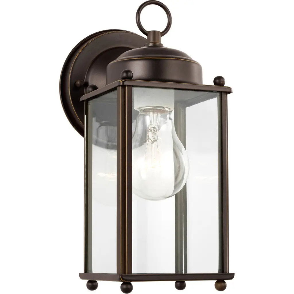 The New Castle one light outdoor wall fixture in antique bronze enhances the beauty of your property, makes your home safer and more secure, and increases the number of pleasurable hours you spend outdoors. The petite proportions and transitional accents of the New Castle outdoor lighting collection by make these one-light outdoor wall lanterns a versatile selection for your home. Offered in White, Polished Brass, Antique Brushed Nickel, Antique Bronze and Black finishes, in either Satin Etched or Clear glass. Clear bulbs are recommended to use for the best aesthetics for the Clear glass fixtures. Both incandescent lamping and ENERGY STAR-qualified LED lamping options are available for those fixtures with the Satin Etched glass. And the Clear glass fixtures can easily convert to LED by purchasing LED replacement lamps sold separately.