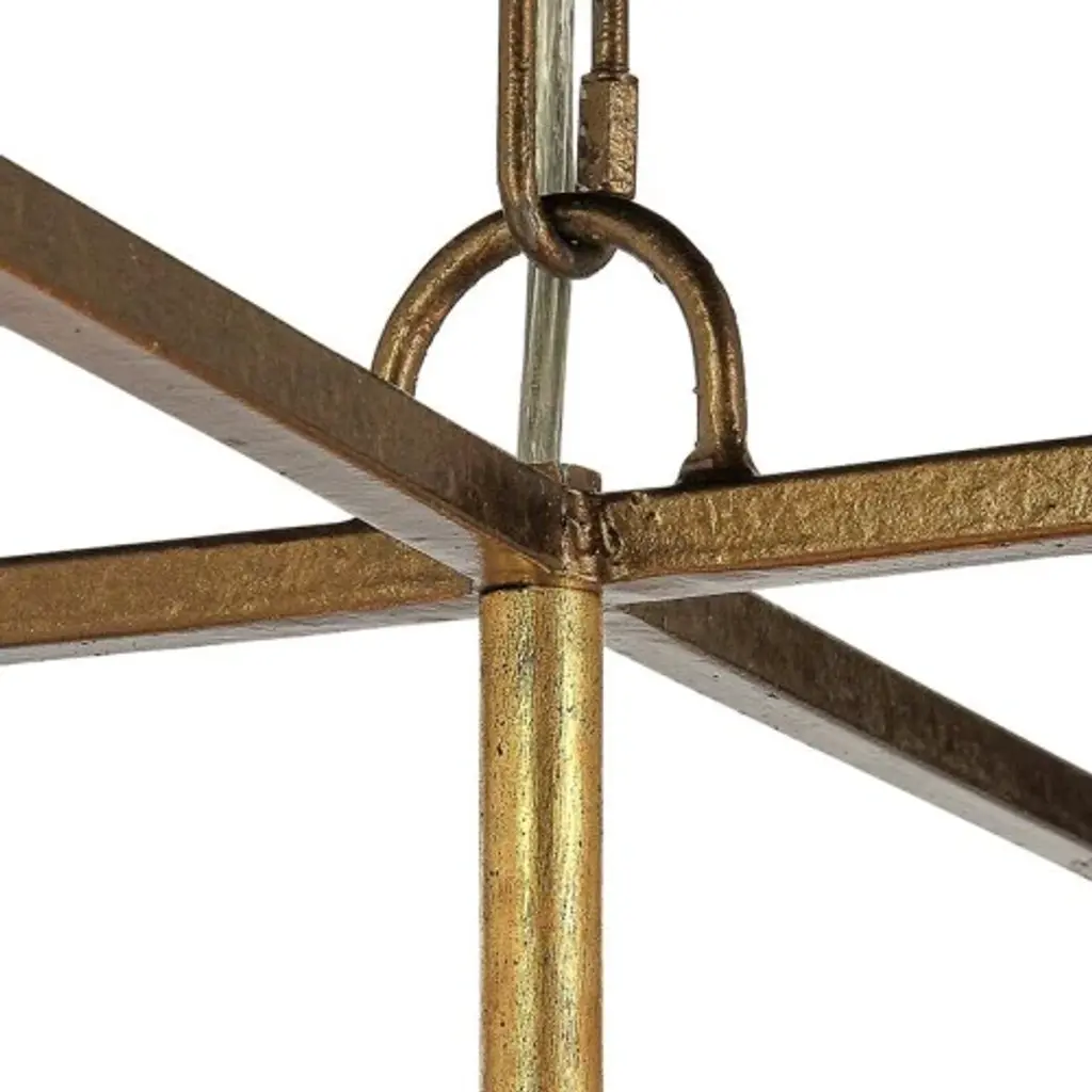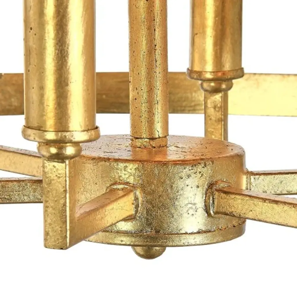 Your dining room will look more magnificent with the addition of this steel lantern. An overlapping geometric metal frame is pulled together with two horizontal bands and faux candles inside for lighting.