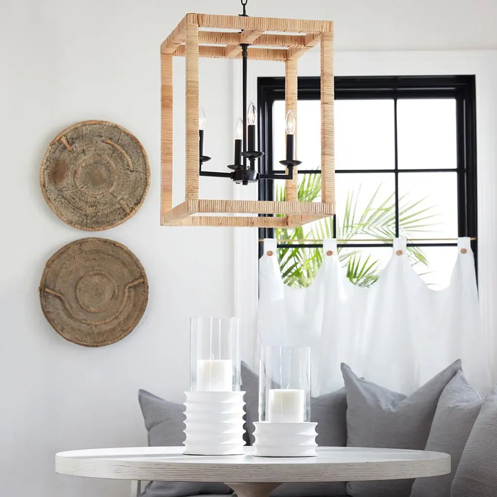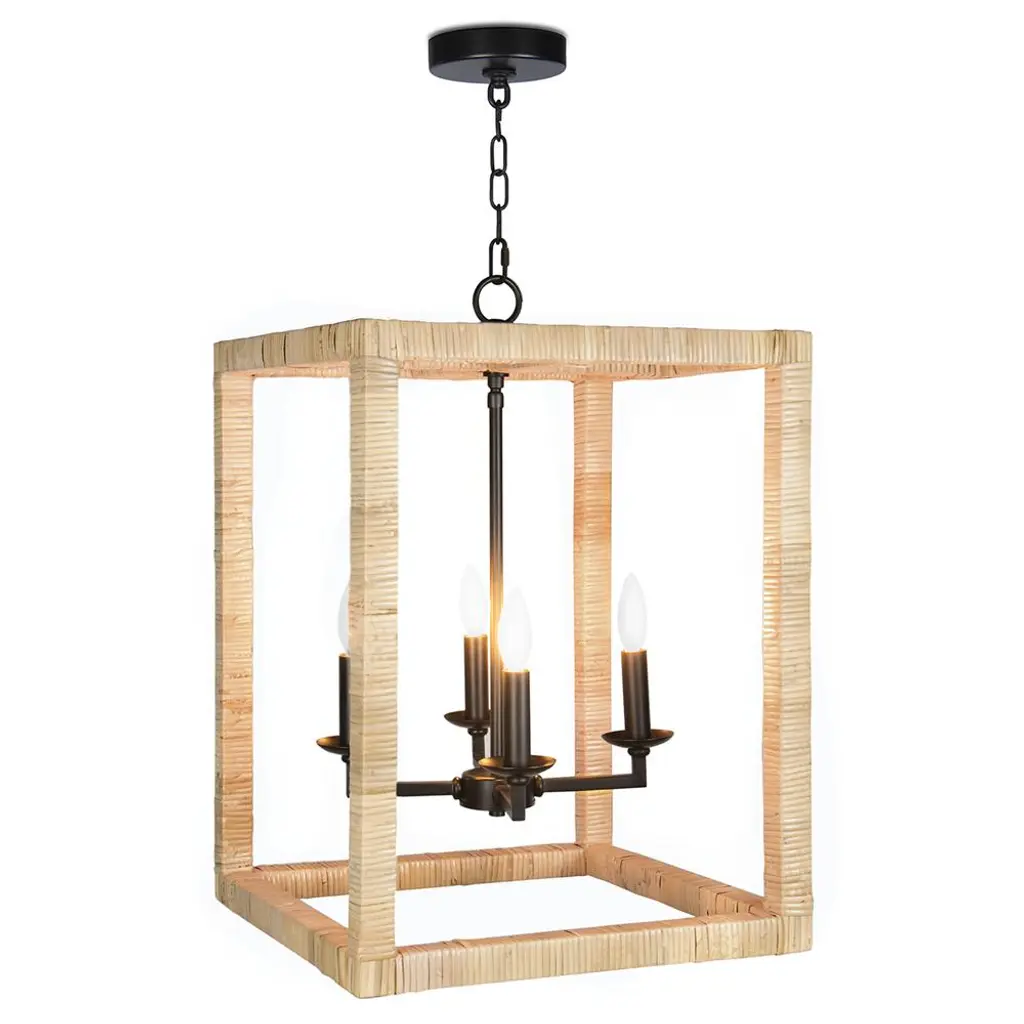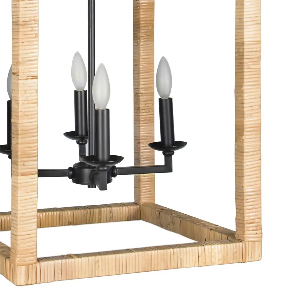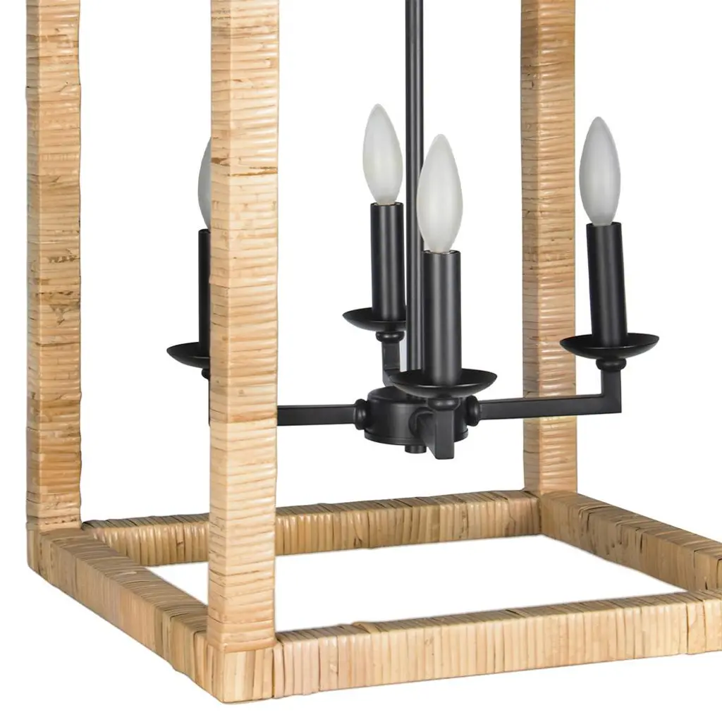 Newport Coastal Beach Natural Rattan Wrapped Frame Lantern