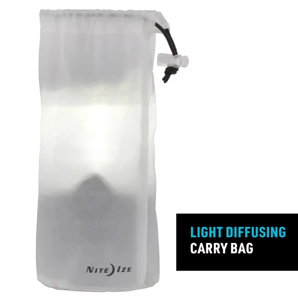 Solve an everyday problem like having convenient outdoor lighting with the Nite Ize Radiant 400 LED Lantern. This lantern provides bright lighting and has a durable design with a carabiner handle that makes it easy to clip, carry or hang the lantern. The lantern has three adjustable levels to provide intensely bright or softer lighting so you can have the ideal lighting in any situation. It also has a protective carrying bag that doubles as a light diffuser. This versatile outdoor lantern is powered by three D-Cell batteries and can run for nearly 800 hours in low mode. Our mission at Nite Ize is to design and manufacture inventor-driven products that organize your life, protect your gear, light your way, and creatively solve your everyday problems. Nite Ize began in 1989 with one entrepreneurial spirit, an innovative product idea, a small Colorado cabin, and enough passion to lay the foundation of who we are today. CEO and Founder Rick Case continues to helm the Nite Ize ship, instilling his energy, inventor-driven creativity, and attention to detail into every aspect of our company. We pride ourselves in being fun and functional, trusted and innovative, and obsessively dedicated to making products that support your life.