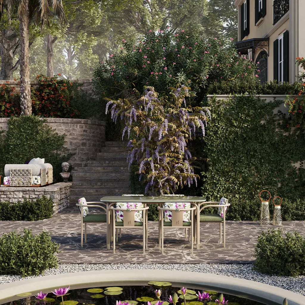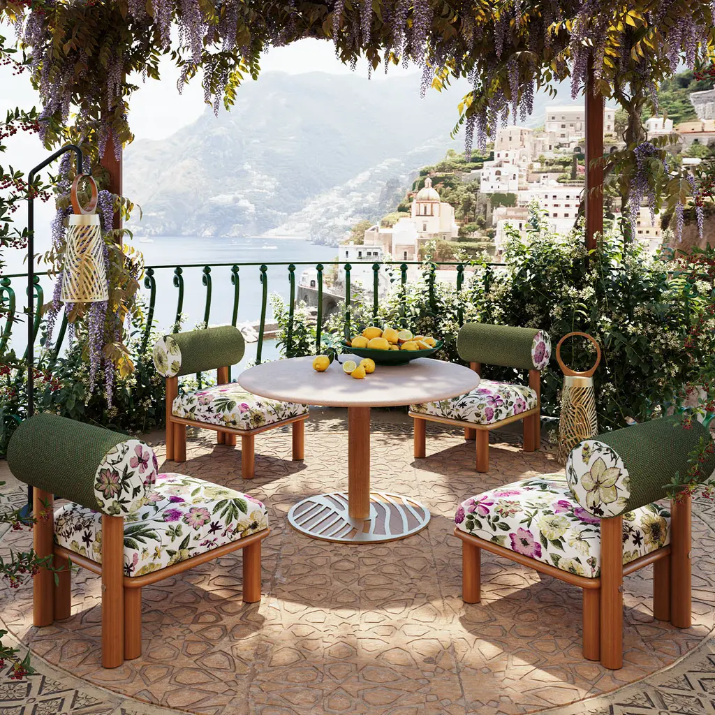 Noora, Arabic for "light", is a portable outdoor lantern designed by Lorenza Bozzoli. Its conical lampshade, varnished for outdoor use, has a modern and elegant design. The iroko wood handle is water-resistant. Noora features a rainproof LED light, 30W power, 9900mAh lithium battery lasting six hours. The LED can be easily inserted and removed from the lantern thanks to a magnetic mounting system. It's rechargeable via a supplied USB cable and controllable with a remote.