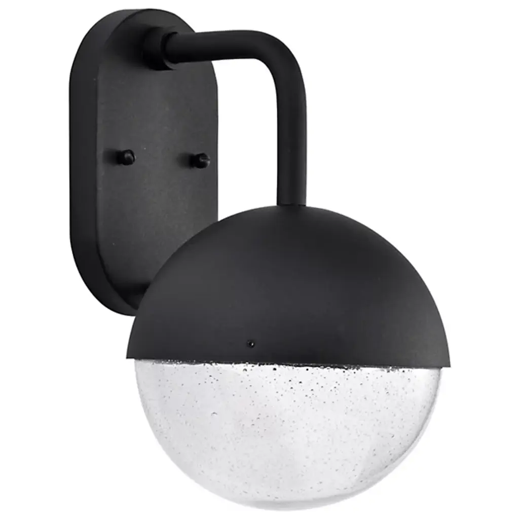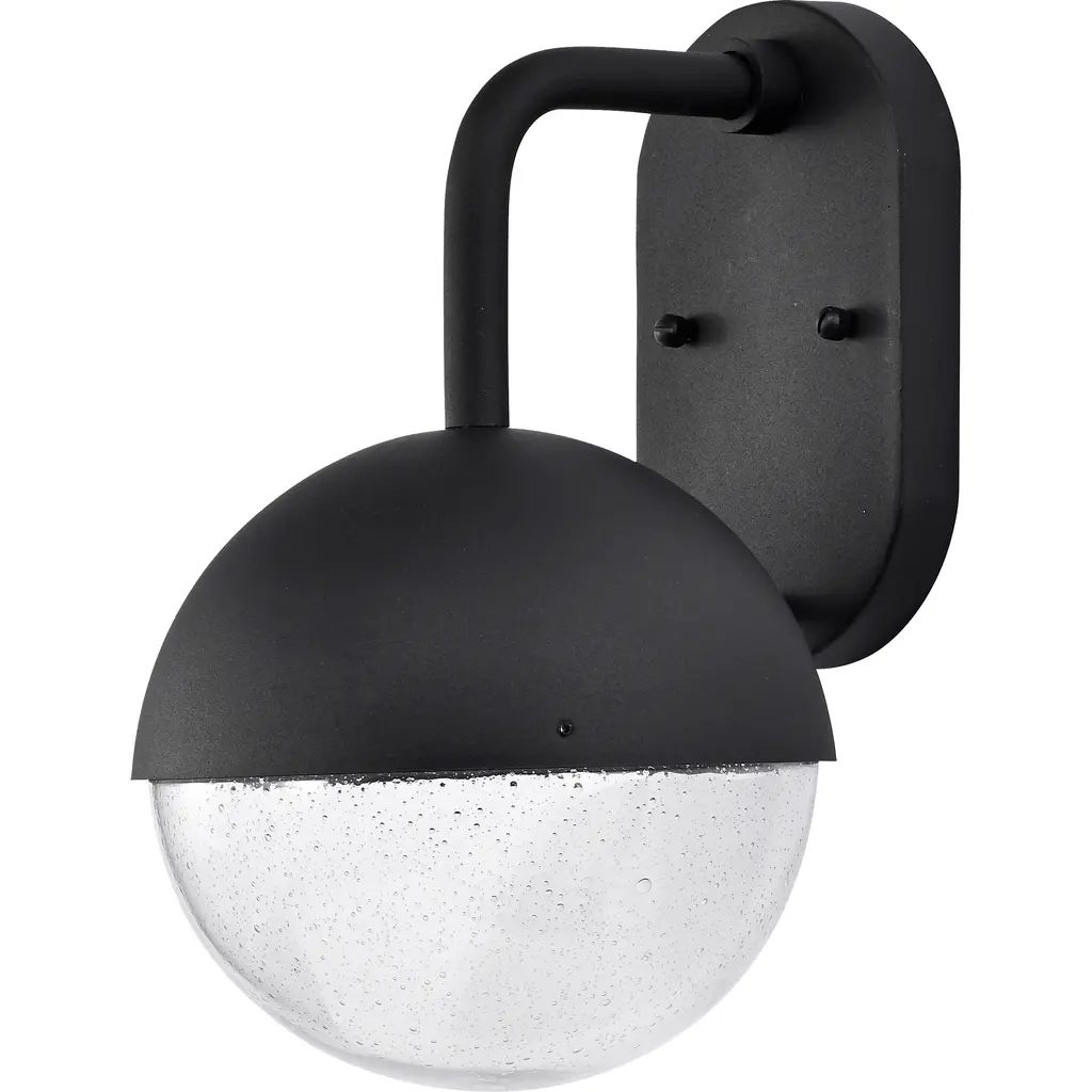 Collection: Atmosphere, Material: Aluminum, Finish Color: Matte Black, Width: 8", Height: 13.5", Depth: 9.5", Backplate Width: 8", Backplate Length: 1", Lamping Type: LED, Wattage: 6 Watts, Cri: 90, Color Temperature: 3000 Kelvin, Lumens: 550, Dimmable: Yes, Moisture Rating: Dry Rated, Desc: The Atmosphere 62-1615 LED large outdoor wall lantern makes a giant impact with its minimal design. The integrated LED module is housed within a sphere of matte black-finished metal and opal glass and is suitable for all exterior applications. The single-arm extends and curves downward, continuing the simple design surrounding this fixture. Fully integrated 10-watt LED Fixture measures 10 inch diameter x 16.5 inch height x 11.5 inch extends Rated for wet locations with full exposure Finished in matte black Mounting hardware and installation instructions included Limited three year fixture warranty. Rated Lifetime Hours: 30000 / Operating Temperature: -20C (-4F) to a maximum of +40C (+104F)