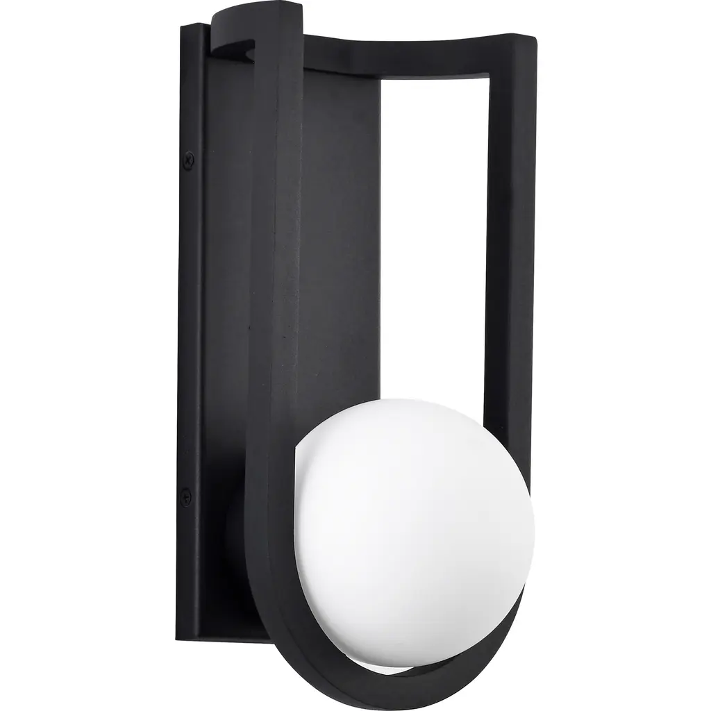 Collection: Cradle, Material: Glass, Finish Color: Matte Black, Width: 6", Height: 12", Depth: 5.75", Backplate Width: 11", Backplate Length: 0.75", Lamping Type: LED, Wattage: 6 Watts, Cri: 90, Color Temperature: 3000 Kelvin, Lumens: 550, Dimmable: Yes, Moisture Rating: Dry Rated, Desc: The Cradle 62-1619 LED medium wall lantern makes a stylish, unique impression on a home's exterior with its contemporary-modern design. The long scoop saddles a perfect orb of opal-white glass that houses an integrated LED light source. At only 6 watts, the fixture helps keep costs down. The lantern is an ideal solution for decorative outdoor lighting. Fully integrated 6-watt LED Fixture measures 6 inch width x 12 inch height x 5.75 inch extends Rated for wet locations with full exposure Finished in matte black with white opal glass Mounting hardware and installation instructions included Limited three year fixture warranty. Rated Lifetime Hours: 30000 / Operating Temperature: -20C (-4F) to a