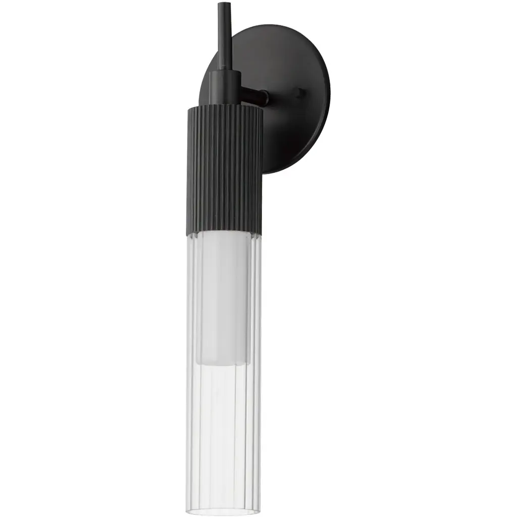 Collection: Overtop, Material: Aluminum, Finish Color: Matte Black, Width: 6", Height: 15", Depth: 6.75", Backplate Width: 7", Backplate Length: 0.75", Lamping Type: LED, Wattage: 10 Watts, Cri: 90, Color Temperature: 3000 Kelvin, Lumens: 900, Dimmable: Yes, Moisture Rating: Dry Rated, Desc: The subtle illumination of the Overtop 62-1607 medium wall lantern provides the perfect ambiance to your home's outdoor decor. A wide backplate anchors the fixture, while the structure of the arm supports the integrated LED module. Dual shades comprised of a silver-painted metal and an inner frosted shade protects the components from the elements. Elevate your patio, deck, or other areas of your home's exterior in style. Fully integrated 10-watt LED Fixture measures 6 inch diameter x 15 inch height x 6.75 inch extends Rated for wet locations with full exposure Finished in matte black with an outer silver metal shade and an inner frosted shade Mounting hardware and installation instructions in