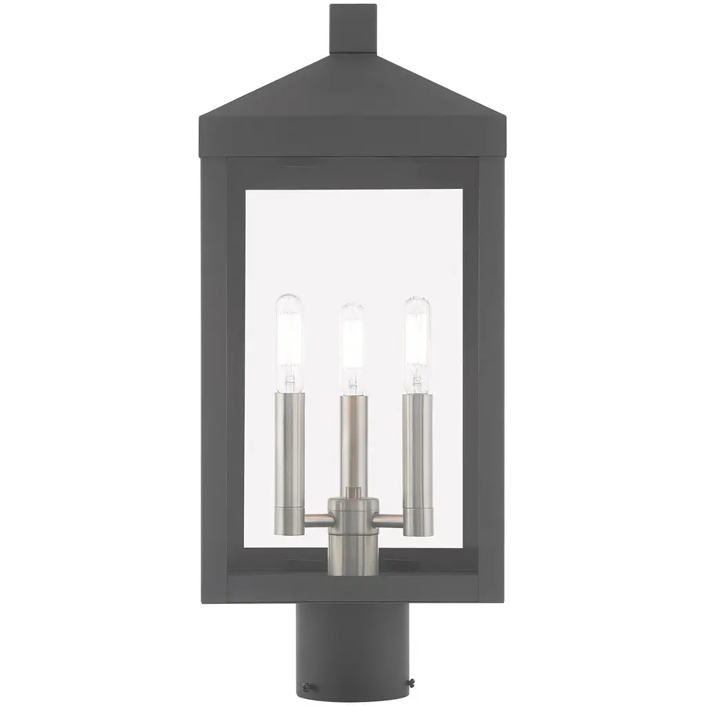 Nyack 3 Light 20 Inch Scandinavian Gray Outdoor Post Top Lantern