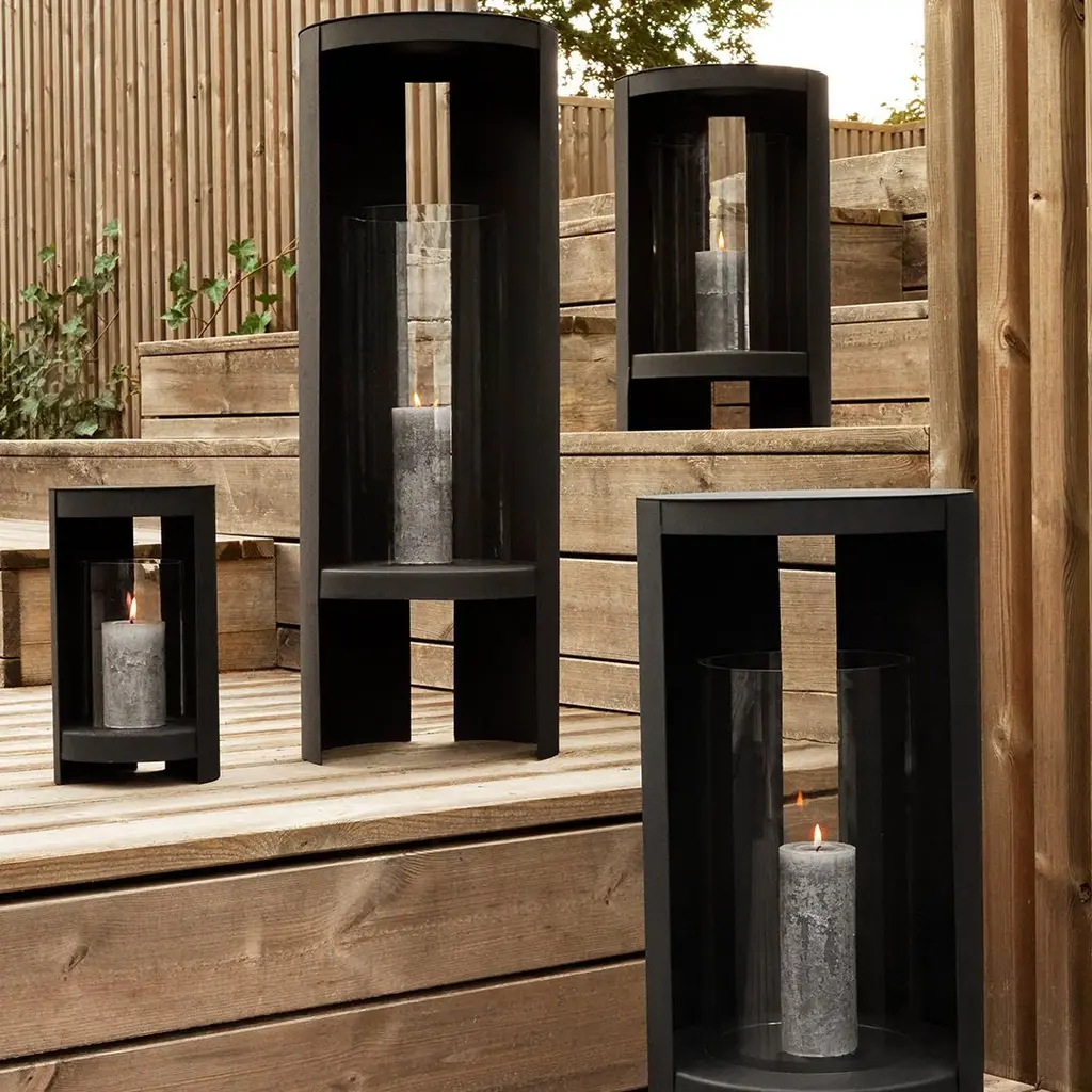 The ORA outdoor lanterns are designed to experiment with light and show you the way as night falls. The lanterns will cast light in two directions – a subtle gleam going backwards and a more focused ray shining forward, lighting up paths and terraces. Unlike ordinary lanterns, the ORA collection has been thoroughly developed to treat light in a new way, making outdoor spaces atmospheric and inviting to spend time in. Add your favourite candle by lifting the top of the lantern.